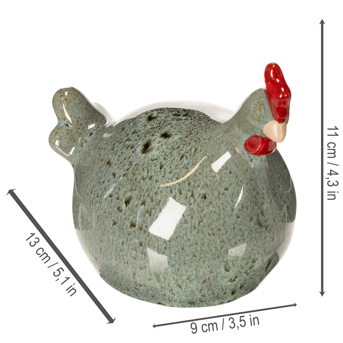 Tämä koristeellinen figuuri on ehdoton hankinta, erityisesti maalaisromanttisen tai rustiikkisen tyylin ystäville. Hieman kiiltävä pinta ja huolellinen työnjälki antavat sille elegantin, luonnollisen ja ajattoman ilmeen. Olipa kyseessä lahja tai omaan kotiin vietävä esine, nämä kanat ilahduttavat kaikkia, jotka arvostavat rustiikkista tyylikkyyttä. Veikkaan, että löydät sille täydellisen paikan heti!