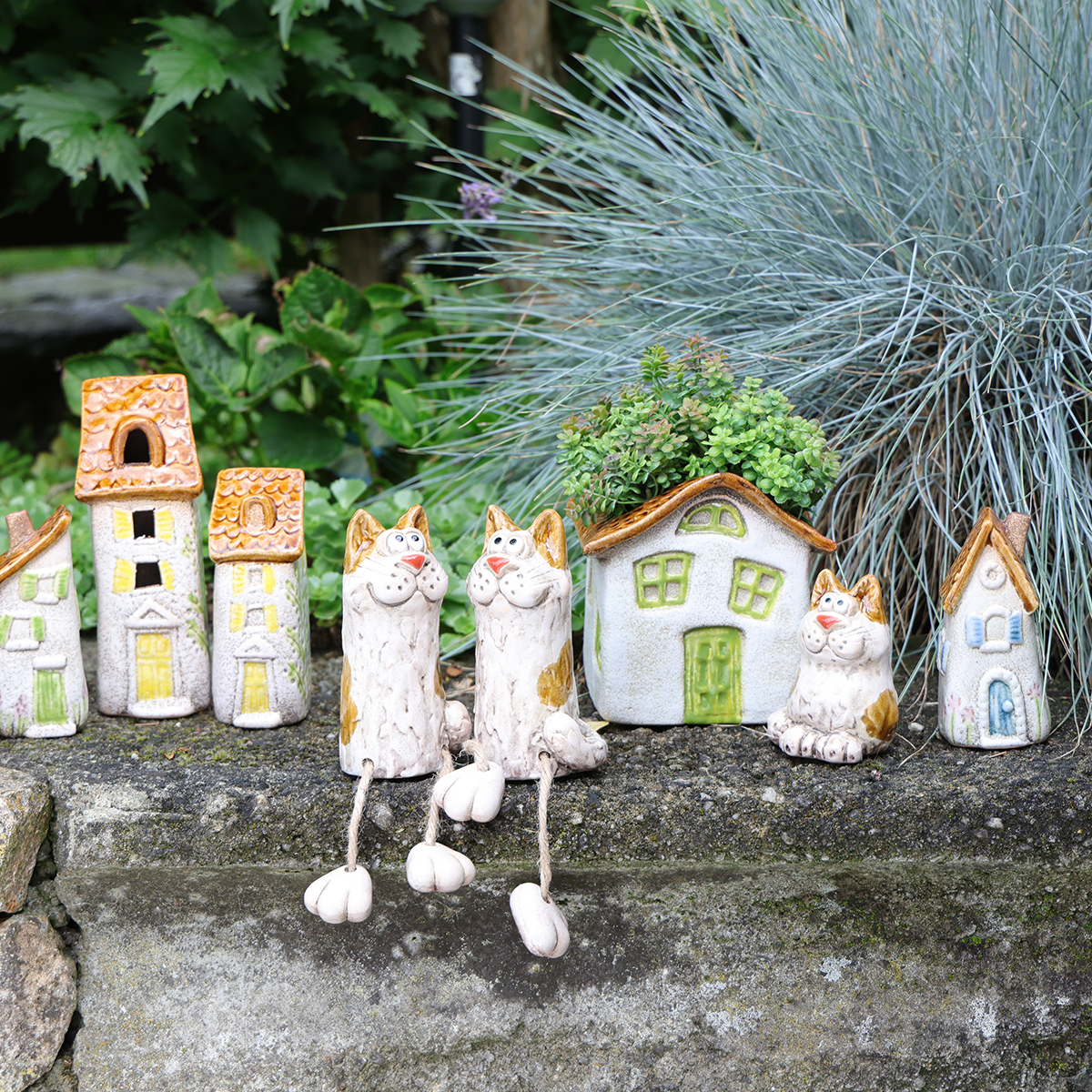 Nämä ihastuttavat pienet keramiikkatalot tekevät huoneesta kutsuvamman. Oletko kyllästynyt tyhjiin hyllyihin tai ikkunalaudalle? Tai ehkä etsit viehättävää ja ainutlaatuista lahjaideaa? Silloin käsinmaalatut keraamiset miniatyyrimme ovat juuri sitä, mitä tarvitset! Leikkisät värinsä ja ihastuttavat yksityiskohdat luovat välittömästi viihtyisän tunnelman. Käytettiinpä niitä sitten kevään koristeina tai vain lisäämään rustiikkista tunnelmaa olohuoneesi hyllylle, nämä keramiikkatalot sopivat mihin tahansa sisustustyyliin. Mutta varoitus: kun sijoitat nämä pienet talot paikoilleen, ne ovat taatusti todellinen katseenvangitsija! Ei ihme, sillä ne yhdistävät taiteellisen käsityötaidon hillittyyn viehätykseen. Jopa työpöydällä, toimiston sisustuksena tai pienellä parvekkeella niiden koko ja luonnollinen muotoilu luovat mukavan tunteen.
