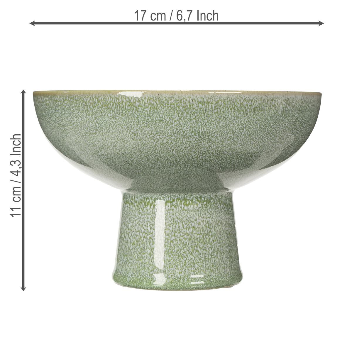 Tämä 17 senttimetrin halkaisijaltaan oleva, korkealaatuisesta keramiikasta valmistettu pikarikulho on täydellinen yhdistelmä estetiikkaa ja toiminnallisuutta. Mukavan 11 senttimetrin korkeuden ja 17 senttimetrin halkaisijan ansiosta se lepää pienellä mutta tukevalla jalustalla, joka lisää sen vetovoimaa. Sileä, vihertävänharmaa pinta ja sen hienovarainen kuvio täydentävät kauniisti luonnonmateriaaleja, kuten puuta tai pellavaa, luoden sekä ajattoman että modernin ilmeen. Etsitkö erityistä koristekulhoa olohuoneeseesi? Tämä tyylikäs keraaminen kulho tuo keveyttä ja eleganssia mihin tahansa tilaan. Se näyttää erityisen kauniilta puupöydällä tai vaaleiden pellavakankaiden kanssa.