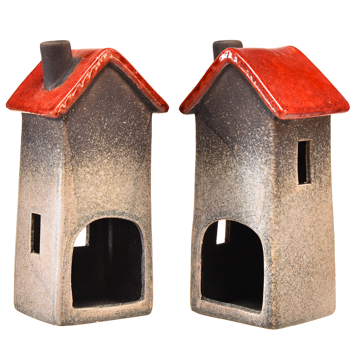 Keraaminen talolyhty punaisella katolla ja sydänikkunalla - 17,5 cm 2 kpl