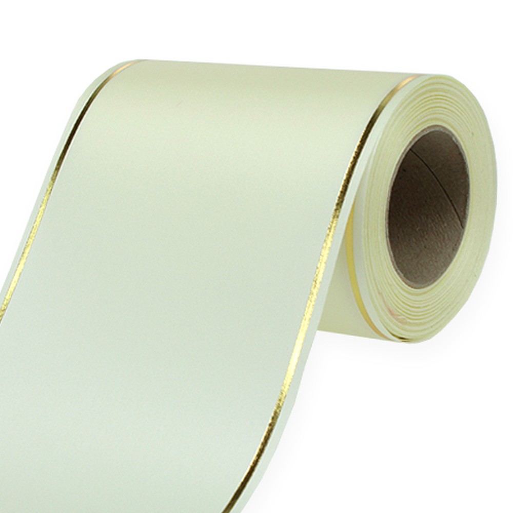Tuotteen nimi: Kermanvärinen kranssinauha kultareunalla, supersatiinia, 125 mm leveä, 25 m pitkä - Vedenkestävä, ihanteellinen tietokoneella tulostukseen ja ympäristöystävällinen