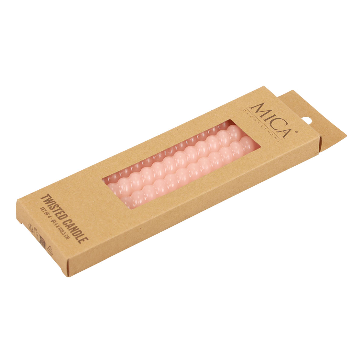 Kierrekynttilöitä on saatavana 4 kpl:n pakkauksissa vaaleanpunaisena. Tarjoamme samankorkuisia ja -halkaisijaisia kierrettyjä kynttilöitä monissa muissa väreissä, kuten viininpunaisena tai ajattoman harmaana.