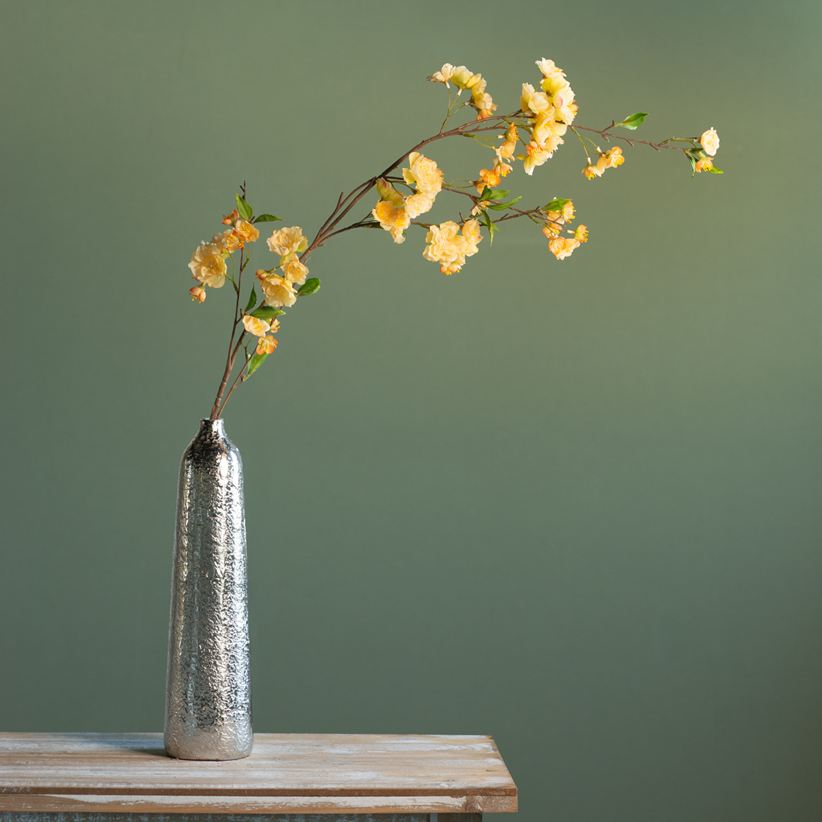 Erityisesti yhdistettynä luonnonmateriaaleihin, kuten puuhun tai keramiikkaan, kirsikankukka luo harmonisen tunnelman, olipa kyseessä sitten maalaistyylinen tai moderni japanilainen sisustus. Jopa yksi oksa yksinkertaisessa lasimaljakossa lisää eloisaa tunnelmaa. Häihin tai muihin tilaisuuksiin kirsikankukka on myös loistava valinta: se lisää romanttisia yksityiskohtia peittämättä kuitenkaan kokonaisuutta. Keltaiset kukat symboloivat iloa ja optimismia, mikä tekee siitä upean valinnan erityistilaisuuksiin.