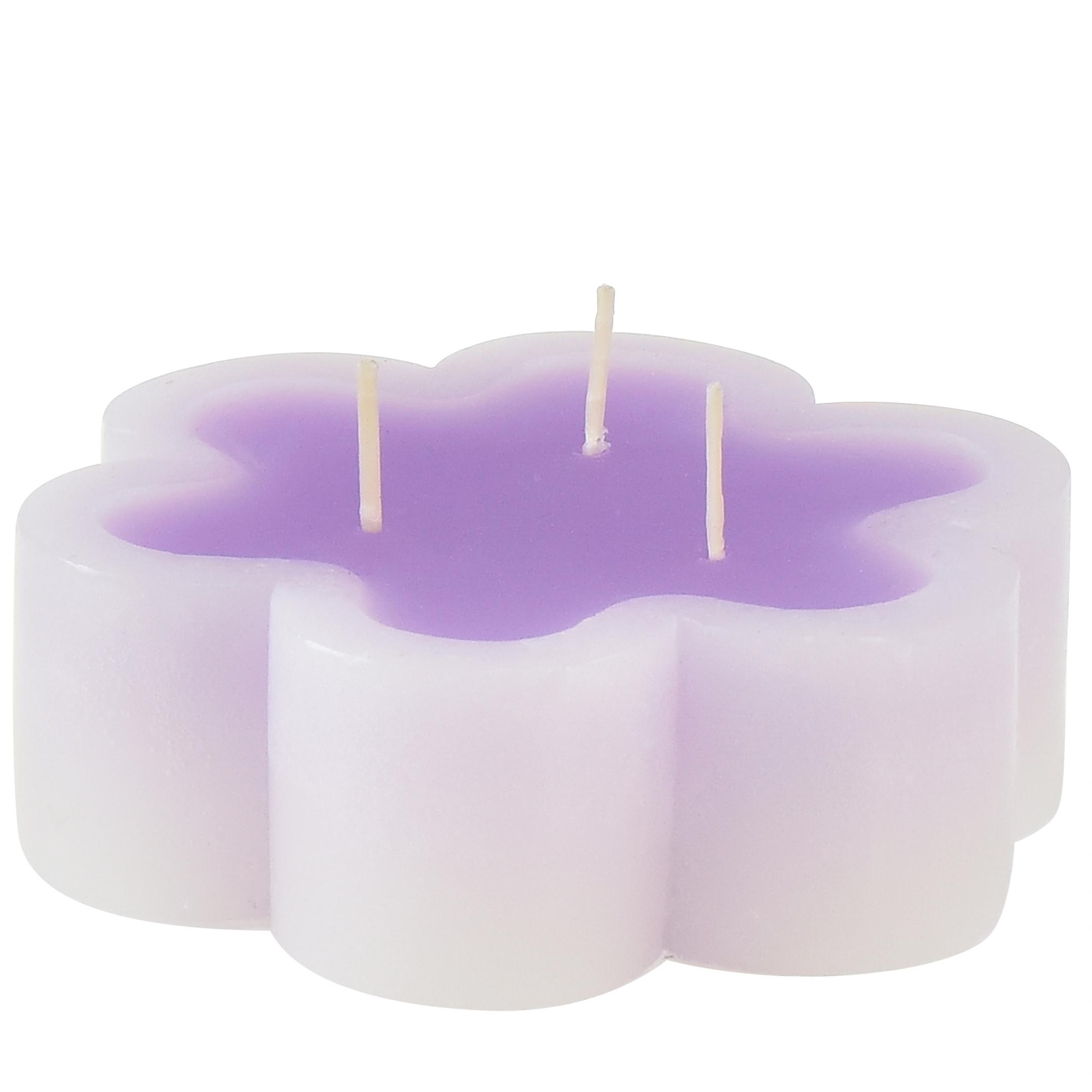 Tuotteen nimi: Kolmilankainen kynttilä kukkakynttilänä violetti valkoinen Ø11,5cm H4cm