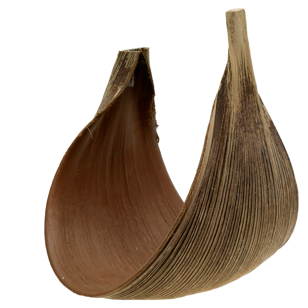 Suuri palmunlehti eksoottiseen olohuoneen sisustukseen Etelämeren tunnelmalla! Tämä suuri ja ylellinen koristeellinen lehti on peräisin aidosta kookospalmusta, ja se on taivutettu. Taivutusaste vaihtelee kappaleesta toiseen, koska kyseessä on luonnontuote. Pieni vinkki: Voit muuttaa kookoslehden muotoa hieman, esimerkiksi taivuttaa sitä enemmän yhteen tai erilleen. Liota Galaran lehti kunnolla, muotoile se haluttuun muotoon ja anna sen sitten kuivua. Kookospähkinän lehti on vahvasti puumainen, joten se on todella vakaa ja kestävä, joten se sopii erinomaisesti ympärivuotiseen kukkasidontaan.