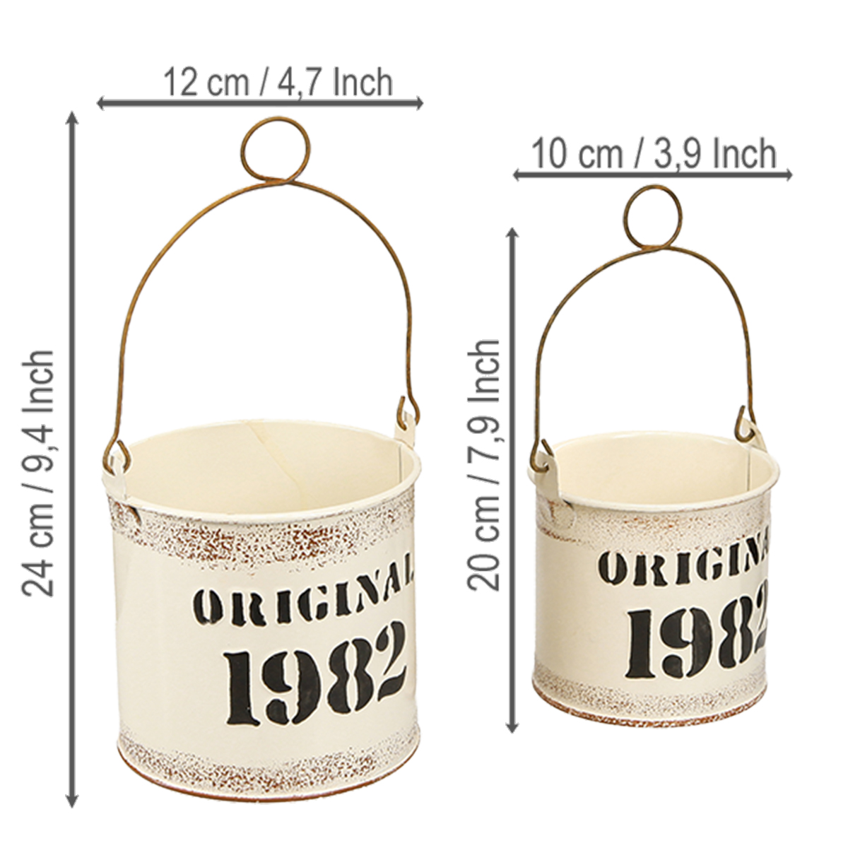 Koristeellinen ämpäri kahvalla ”Original 1982” Kermanvärinen Ø12/10cm 2×2-osainen setti