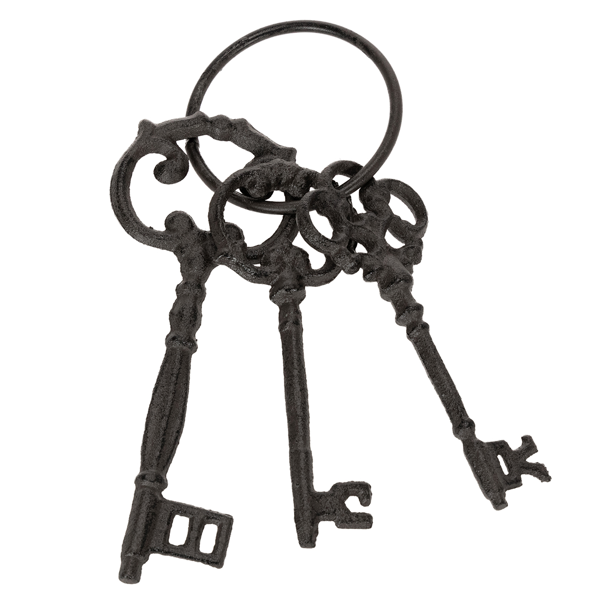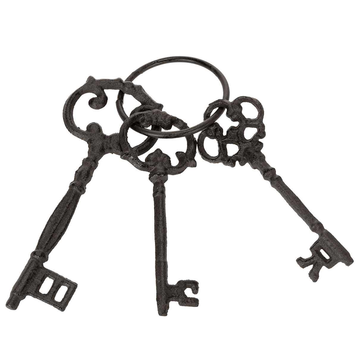 - Muotoilu: kolme erilaista antiikkimallia muistuttavaa avainta, kiinnitettynä renkaaseen