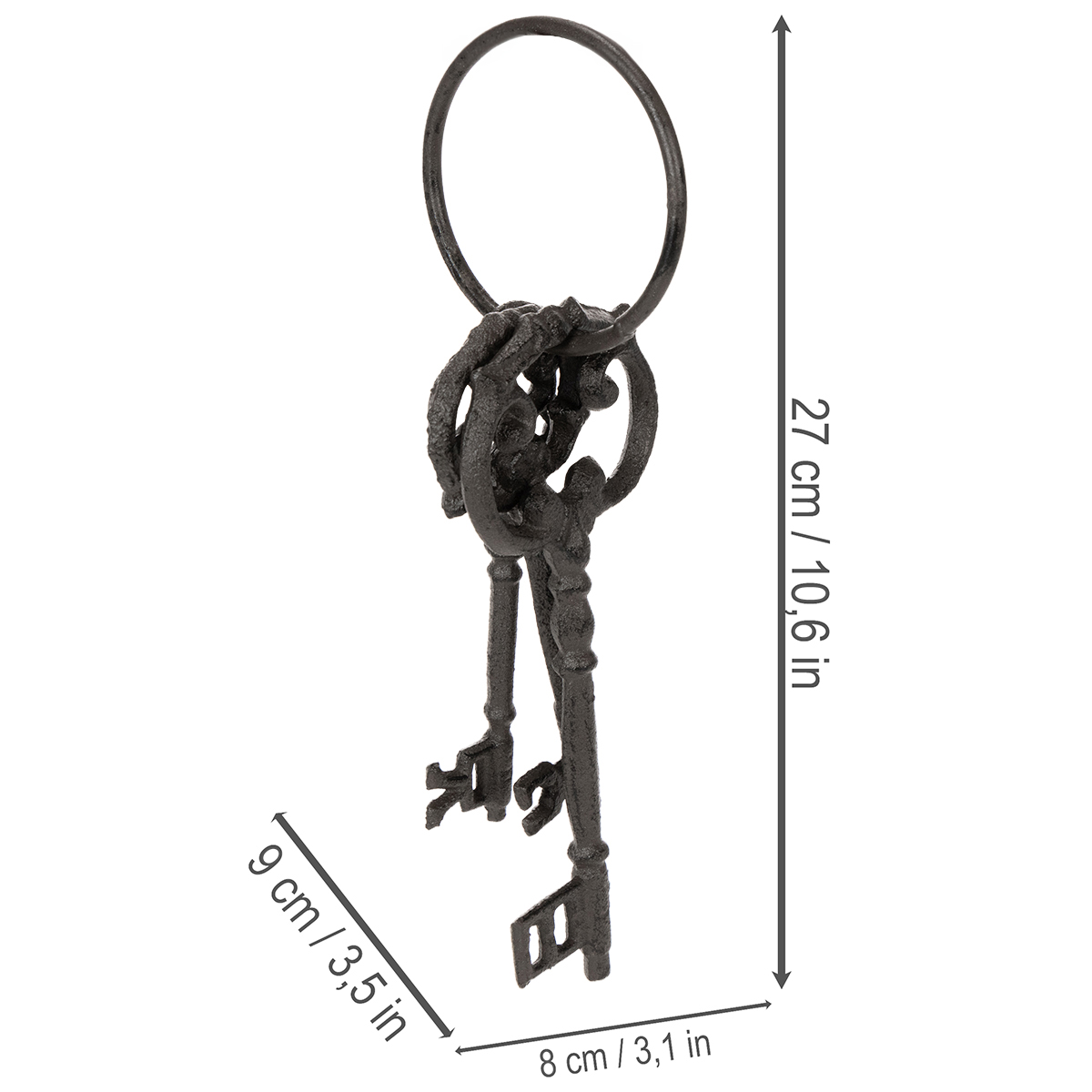 Lämmin, ruskea väri ja korkealaatuinen valurauta antavat tälle avaimenperälle maalaismaisen ja autenttisen ilmeen. Käytettiinpä sitä yksinään tai yhdessä muiden nostalgisten koristeiden kanssa, tämä vintage-avaimenperä sopii täydellisesti maalaistyyliin, shabby chic -tyyliin tai teolliseen muotoiluun. Anna luovuutesi lentää ja löydä sen monet käyttötarkoitukset!