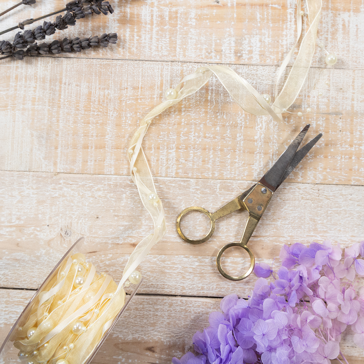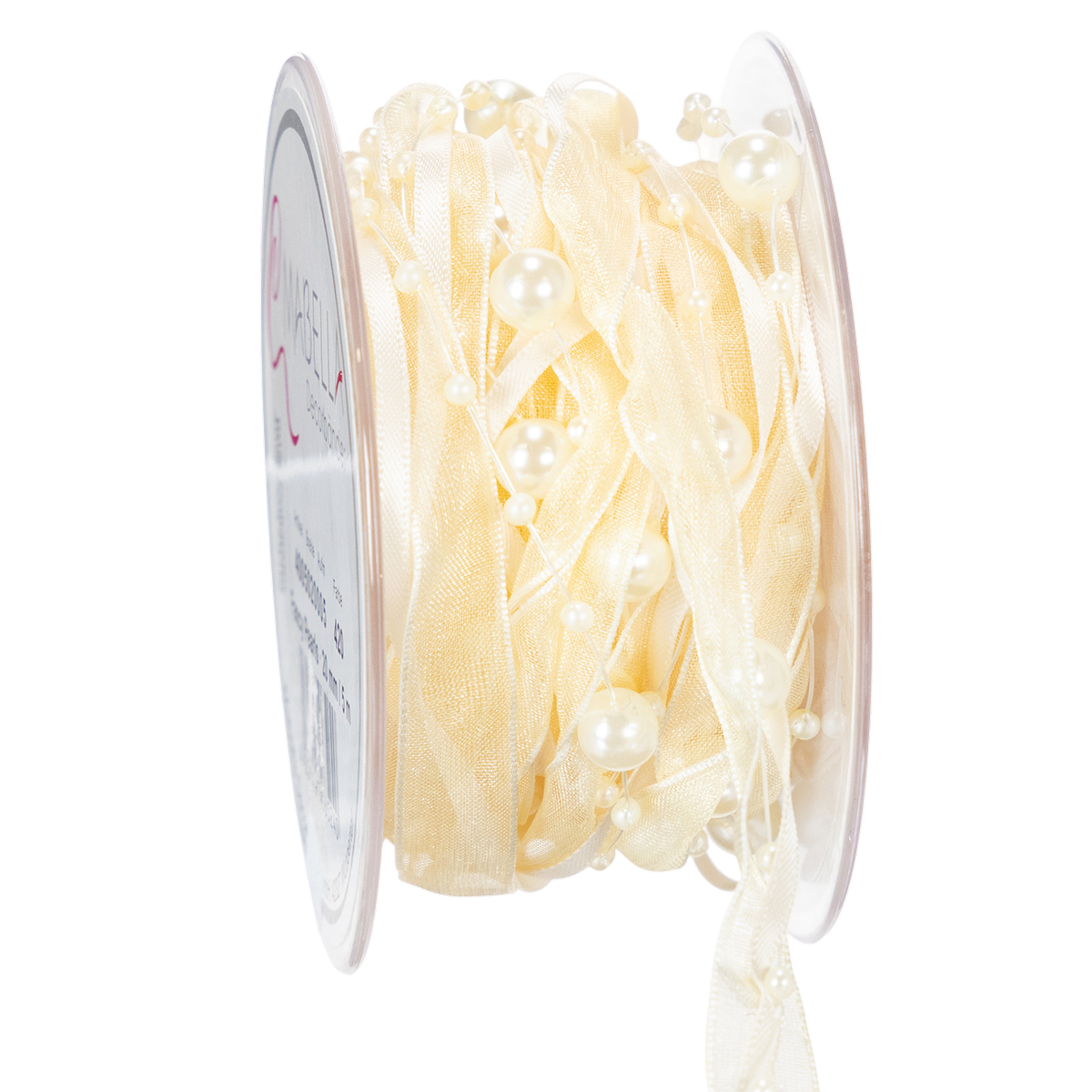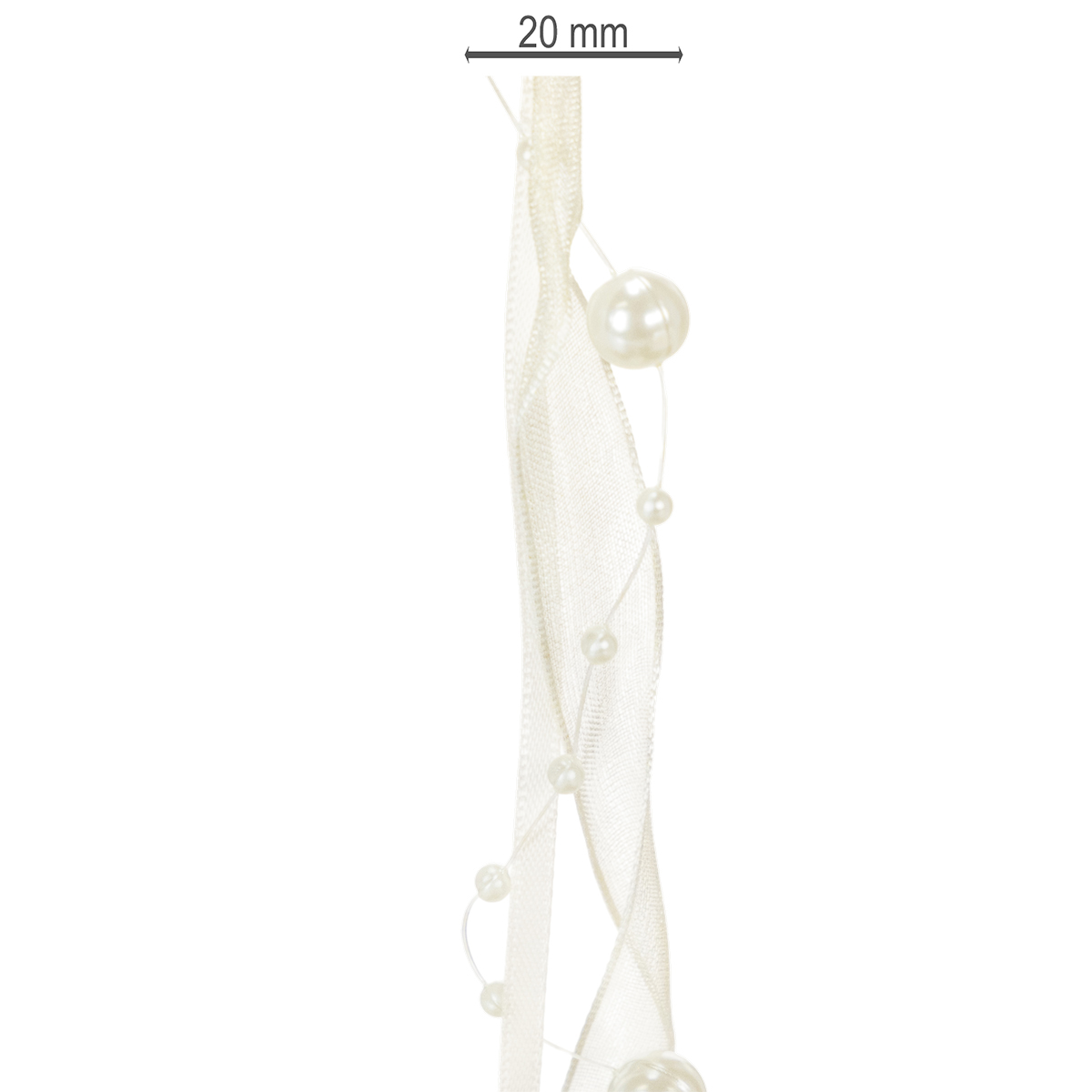Tuotteen nimi: Koristeellinen helminauha, kermanvärinen, 20 mm, 5 m