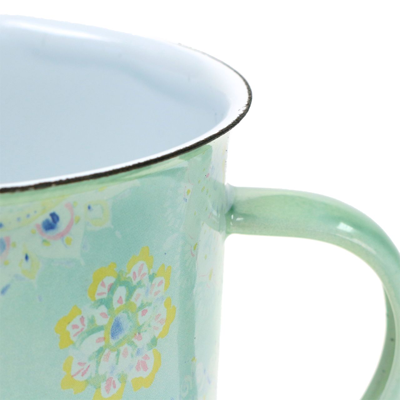 Meditatiivinen vaikutus sielun tasolla: Tämä korkealaatuinen emaloitu koristeellinen kuppi on suunniteltu jalolla painatuksella, jossa on suuria kukkia ja mandalan tyyliin. Herkät pastellivärit tukevat harmonista vaikutusta. Mandaloilla on erityinen merkitys joissakin uskonnoissa, ja niitä käytetään myös meditaatiotarkoituksiin. Se luo meditatiivisen kokemuksen parantavine impulsseineen, jotka tuovat sinut takaisin keskipisteeseesi.