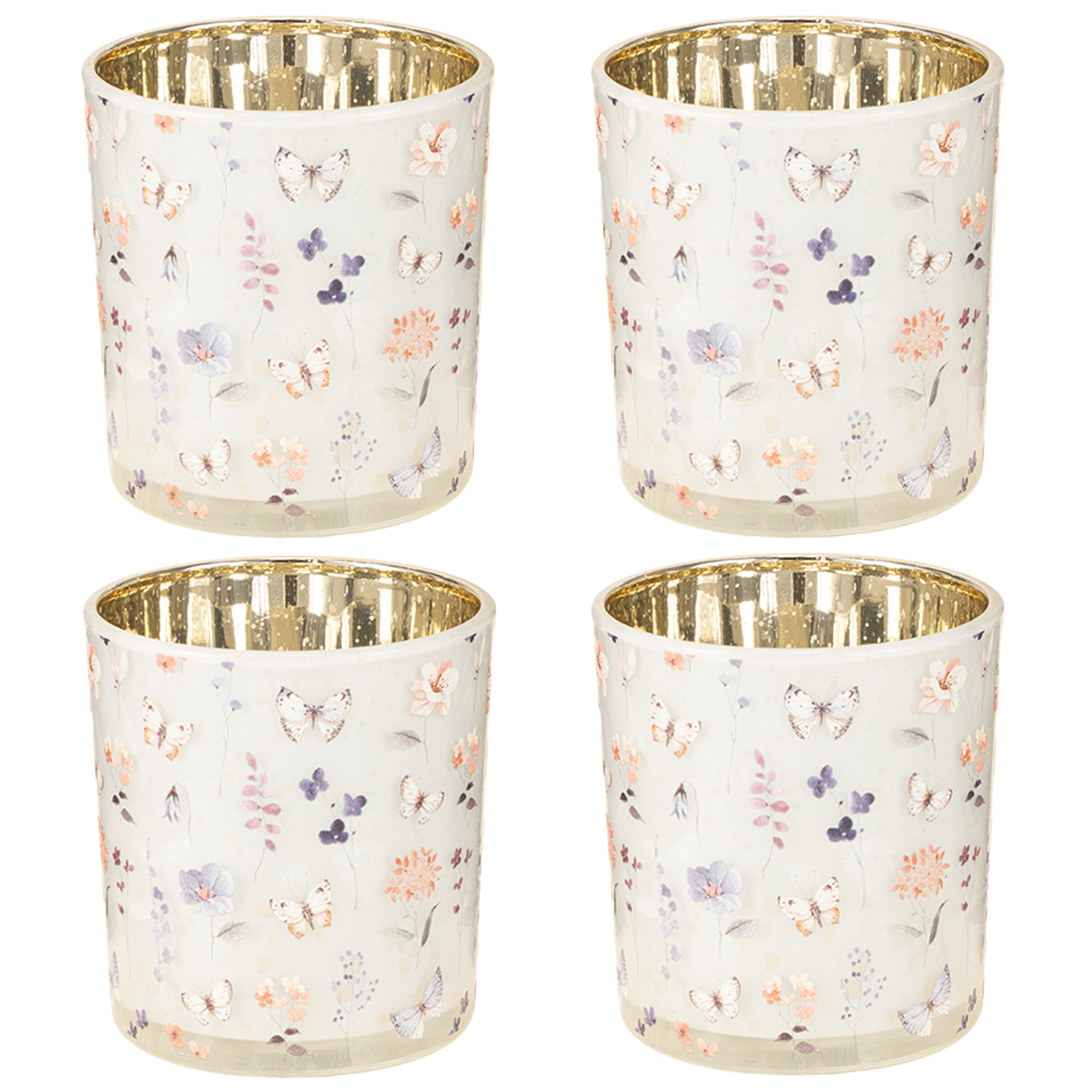 Koristeellinen lasilyhty perhoskuviolla tyylikkääseen sisustukseen, 8 cm, 4 kpl