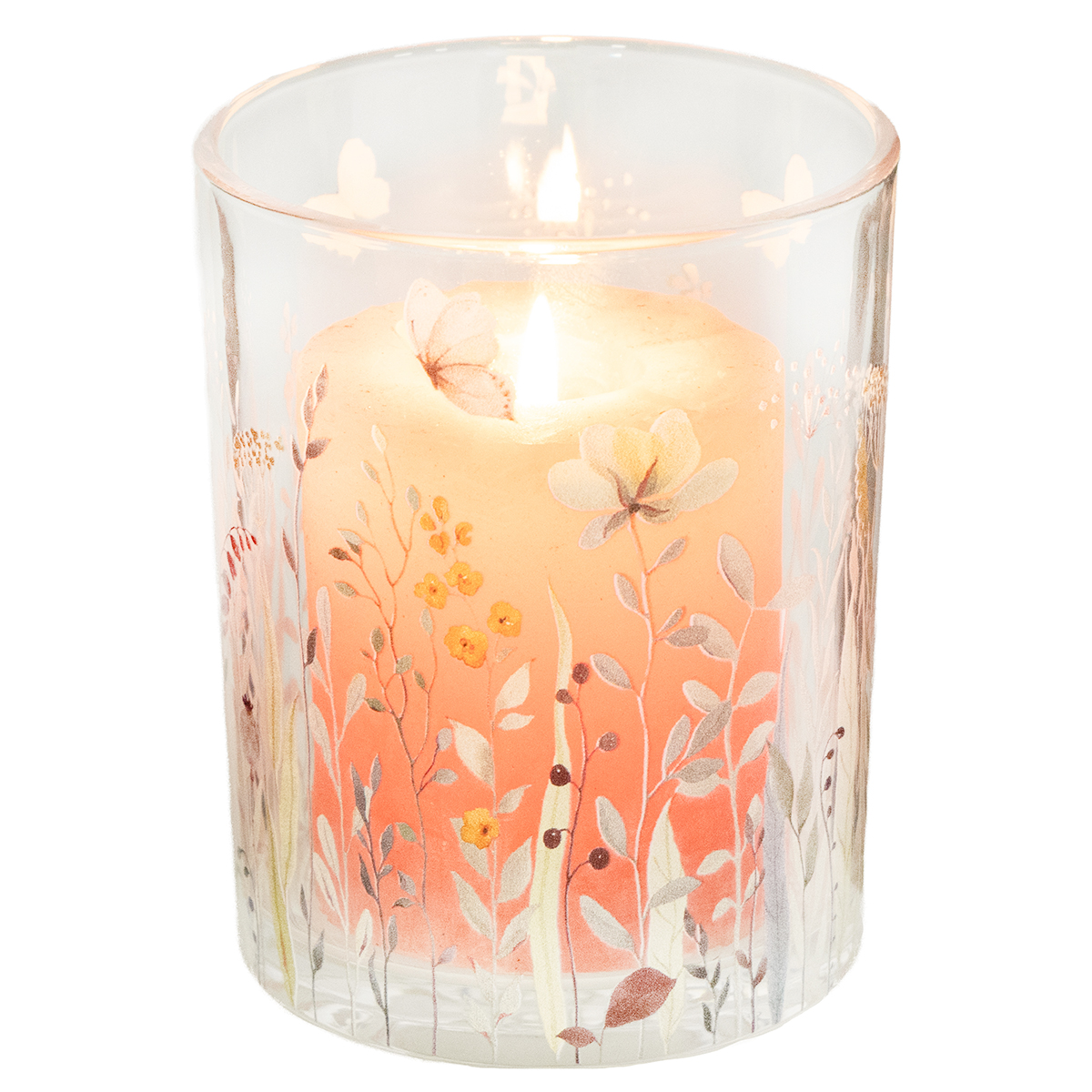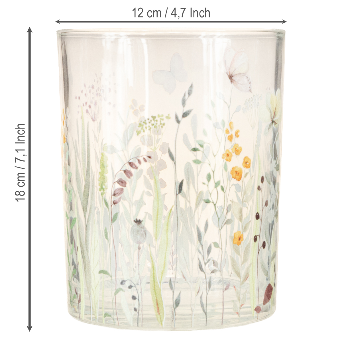 Haluatko lisätä kotiisi raikkaan ja kesäisen silauksen? Tämä koristeellinen kynttilänjalka lumoavalla perhosaiheella vie sinut herkälle kukkaniitylle. Se on kuin pitäisi kevätaamun keveyttä kädessäsi. Olipa se sitten ruokapöydällä, ikkunalaudalla tai terassilla – tämä elegantti lasinen kynttilänjalka tarjoaa paitsi miellyttävää valoa, myös ylimääräisen annoksen tyyliä. Herkän kukkakuvion ja pehmeiden perhosten yhdistelmä antaa mihin tahansa huoneeseen luonnollisen ja rauhoittavan tunnelman. Se sopii myös monenlaisiin sisustustyyleihin. Ja mikä parasta? 18 cm korkea ja 12 cm halkaisijaltaan oleva kynttilänjalka on sekä näyttävä että ihanan hillitty. Asetu mukavasti, nauti pehmeästä valosta ja jätä arki hetkeksi ulkopuolelle.