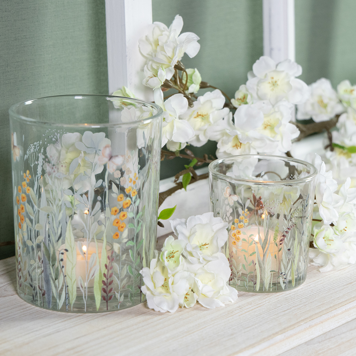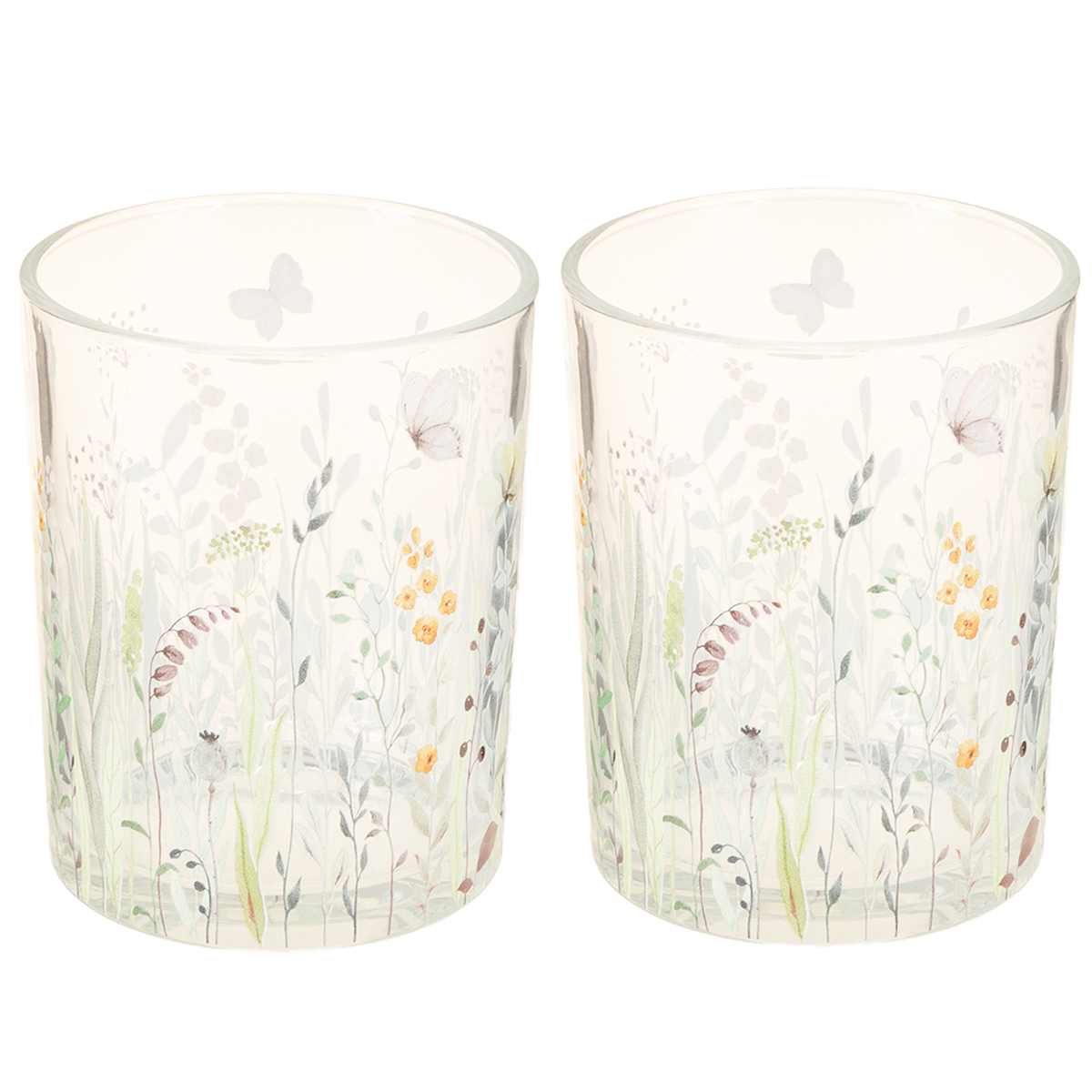 Koristeellinen lasilyhty perhosniittyaiheella tyylikkääseen sisustukseen, 18 cm, 2 kpl