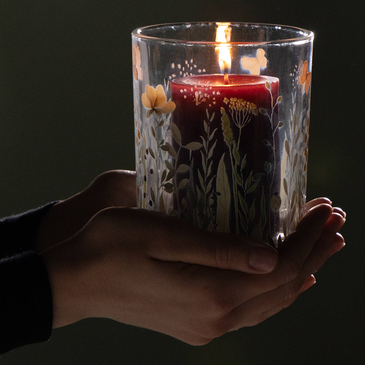 Tämä lasilyhty on enemmän kuin vain kodin sisustuselementti; se kutsuu rentoutumaan. Rakkaudella valmistettu perhosia ja herkkiä kukka-aiheita koristava muotoilu huokuu hillittyä eleganssia. Värit – valkoisen, beigen ja värikkäiden yksityiskohtien harmoninen vuorovaikutus – täydentävät täydellisesti modernia, skandinaavista tai jopa romanttista maalaistyylistä sisustusta. Lyhty säilyttää aina miellyttävän hillityn läsnäolon ja tuo samalla eloa huoneeseen. Aseta se esille yksinään tai yhdistä se eri korkuisiin lyhtyihin luodaksesi leikkisän valaistusefektin. Vinkki: Osana kesäistä kattausta tuoreiden kukkien tai pienten luonnonmateriaalien kera se on todellinen katseenvangitsija. Se luo myös tunnelmallista valaistusta parvekkeelle tai puutarhaan iltaisin – täydellinen leutoina kesäiltoihin.
