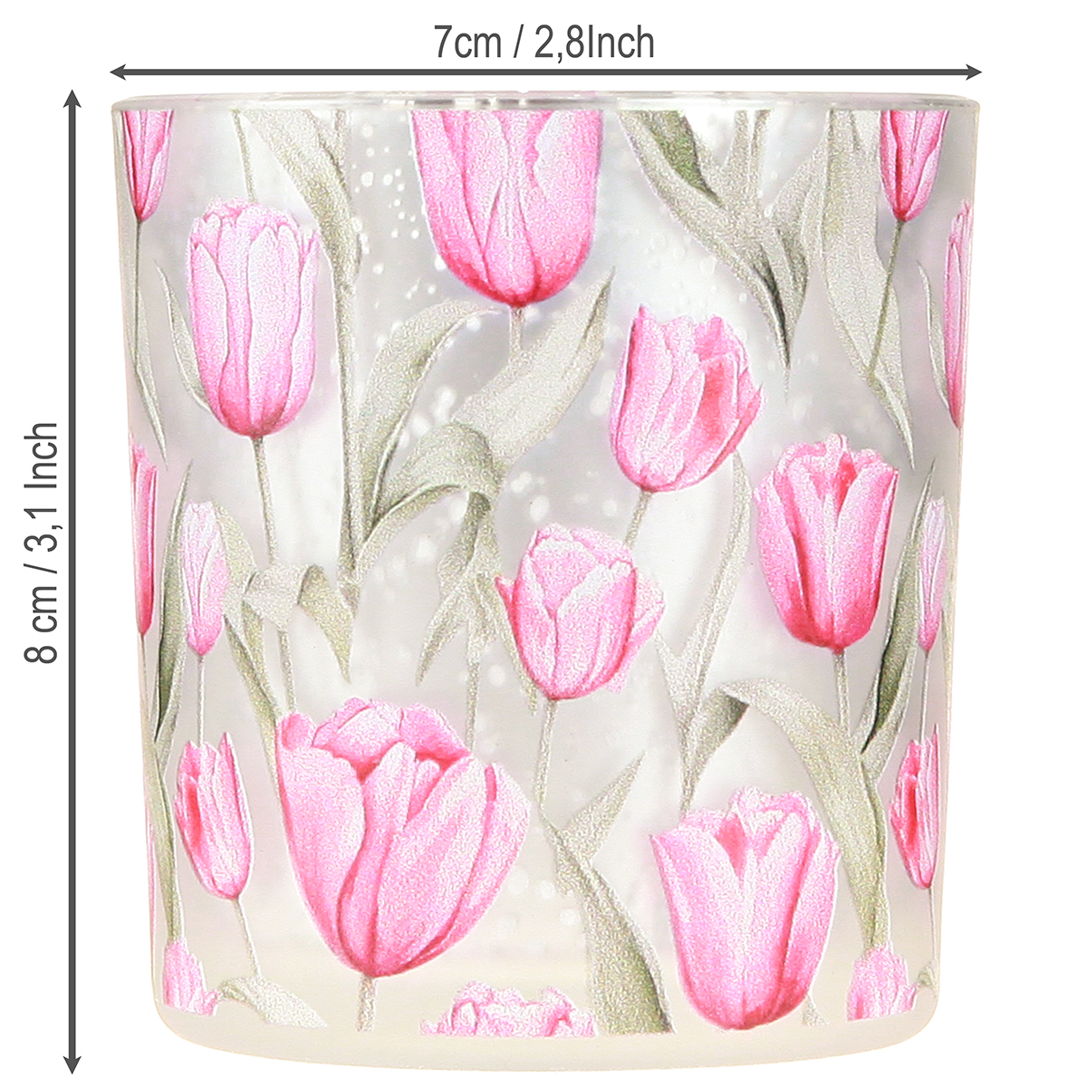 Tuotteen nimi: Koristeellinen lasilyhty tulppaanikuviolla keväiseen kotiin, 8 cm, 4 kpl.