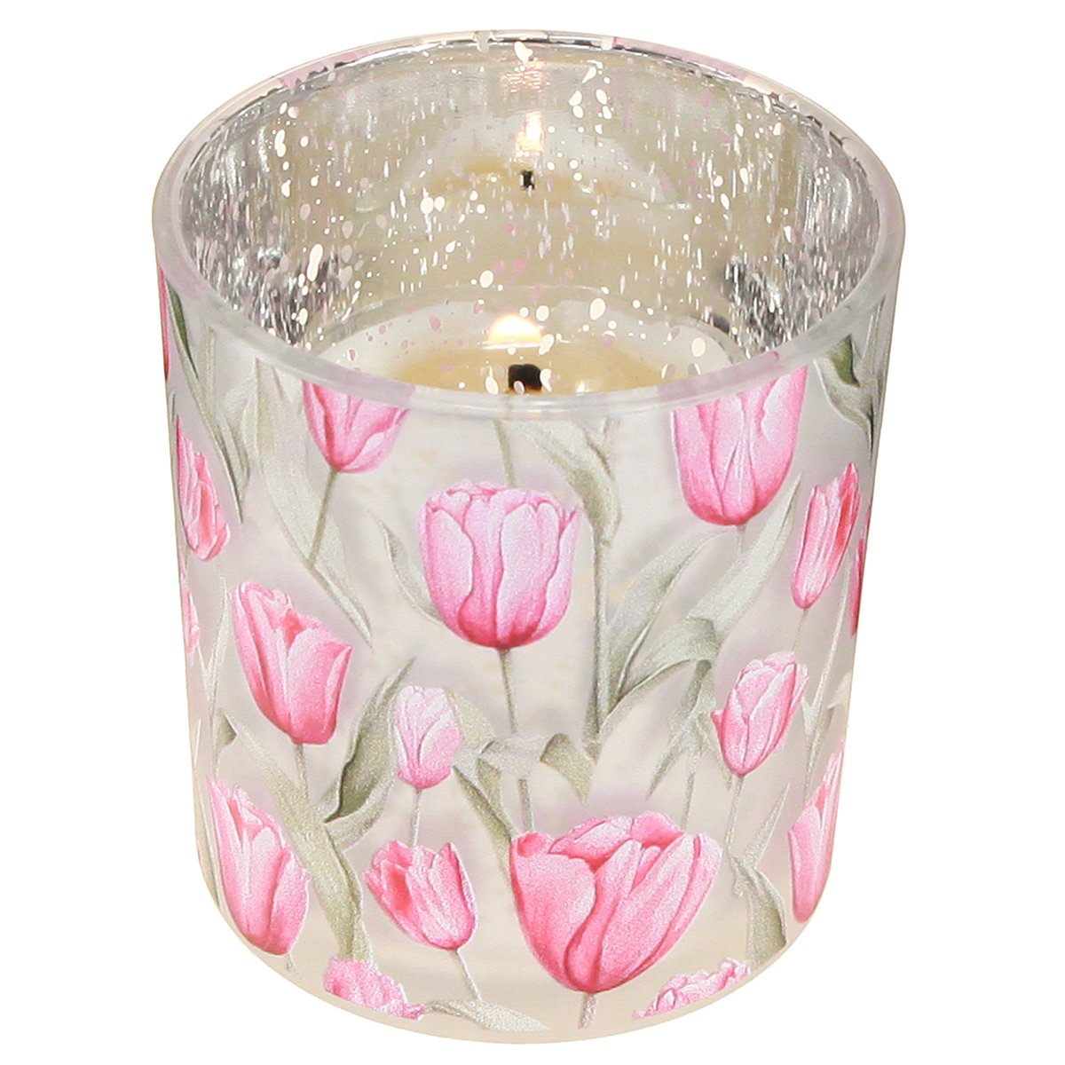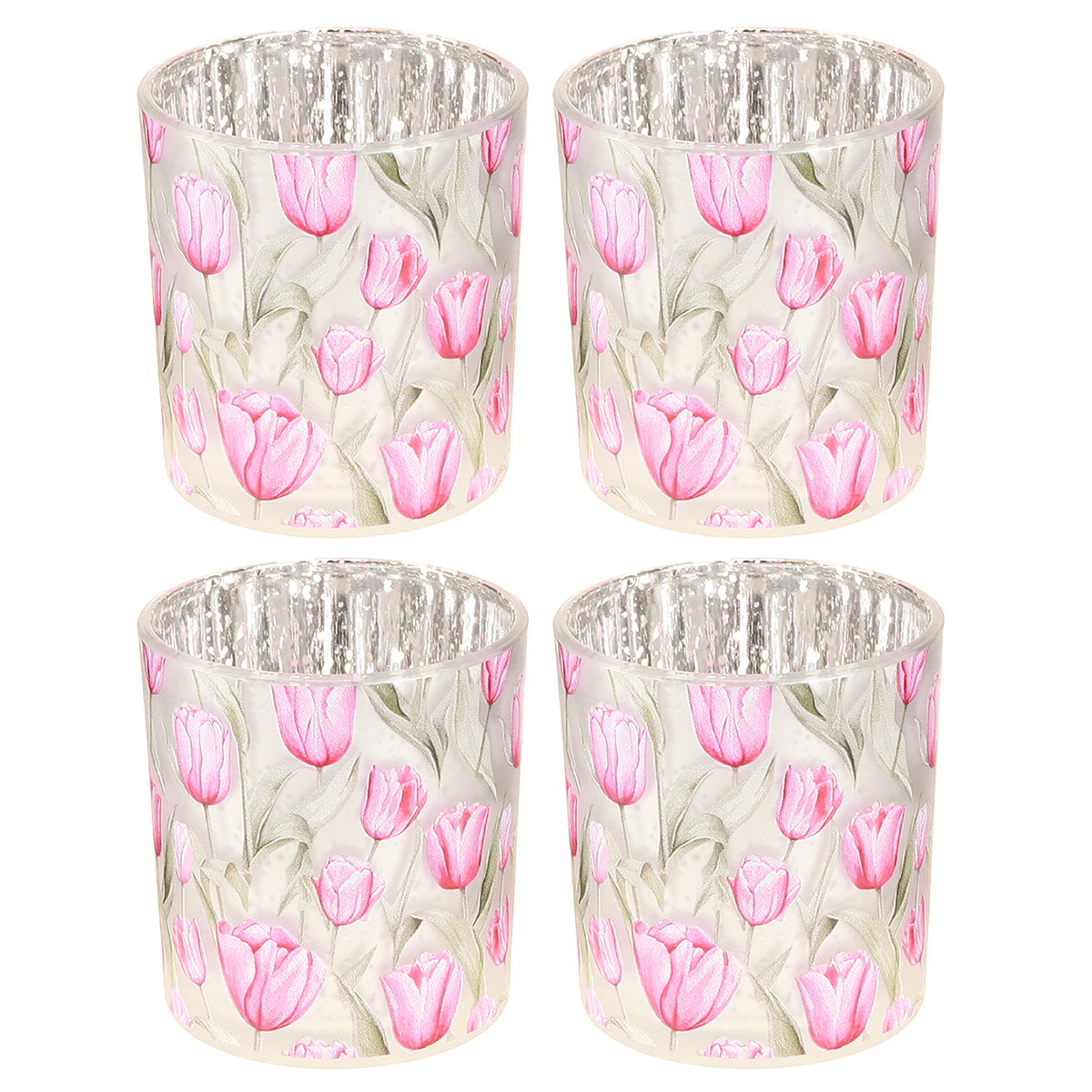 Koristeellinen lasilyhty tulppaanikuviolla keväiseen kotiin, 8 cm, 4 kpl.