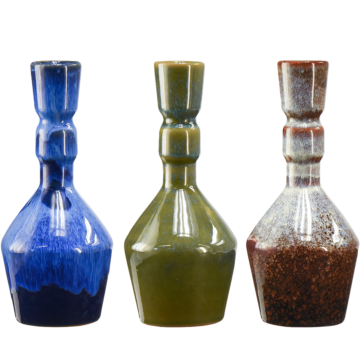 Tuotteen nimi: Koristeellinen maljakko keraaminen sininen vihreä ruskea Ø8cm K18,5cm 3kpl