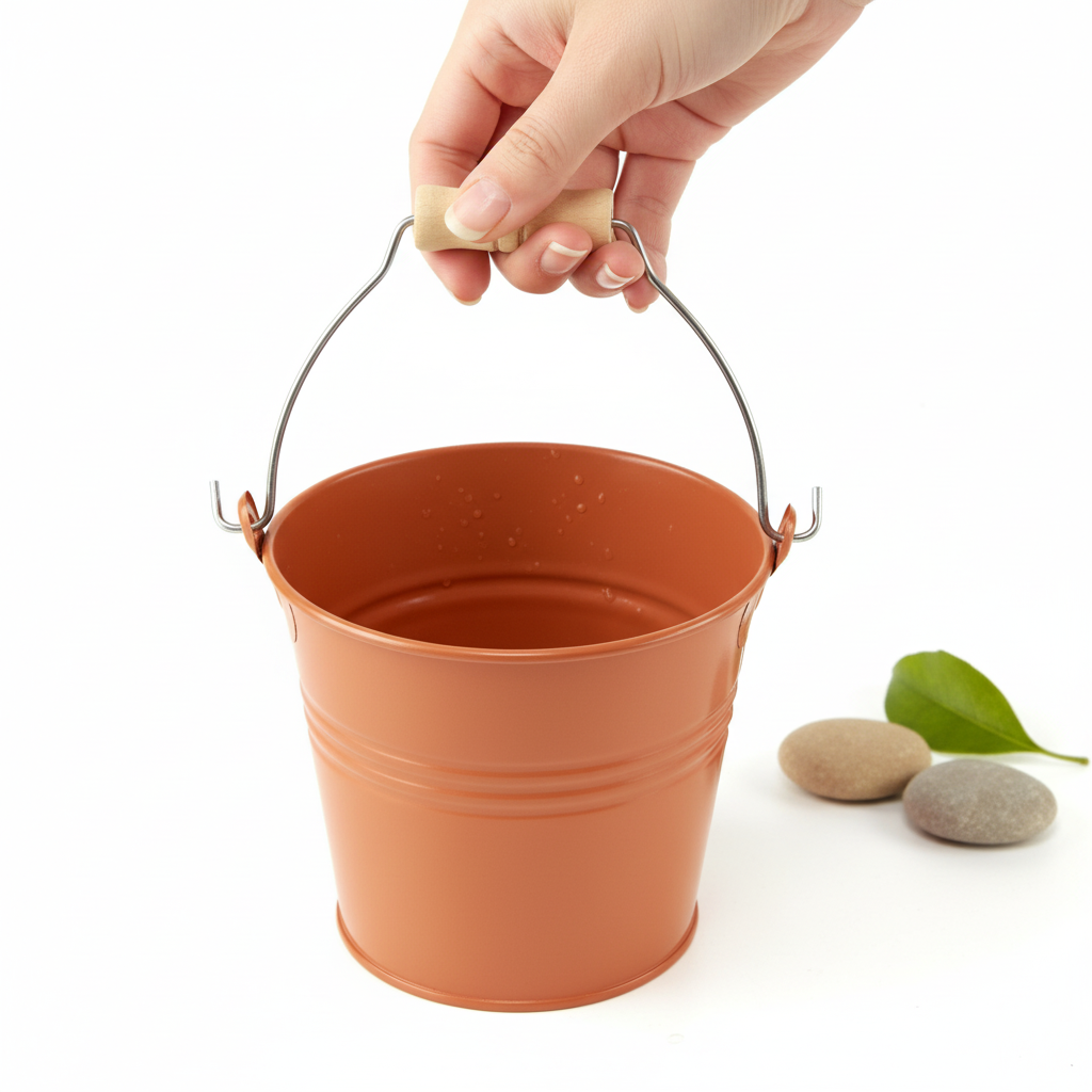 Klassisen muotonsa lisäksi kauhassa on liikkuva kahva, johon kohokohtana kiinnitetään käsittelemätön puinen kahva. Tämä antaa koristeelliselle istutuskoneelle kauniin vintage-ilmeen, joka sopii harmonisesti minne tahansa.