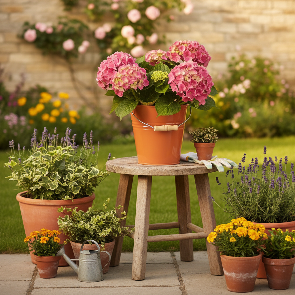 Lämmin, maanläheinen väri antaa enemmän tilaa ruukkukasvien raikkaalle vihreälle. Mukana on myös liikkuva kahva ja pieni kahva, joka on valmistettu luonnonpuusta.