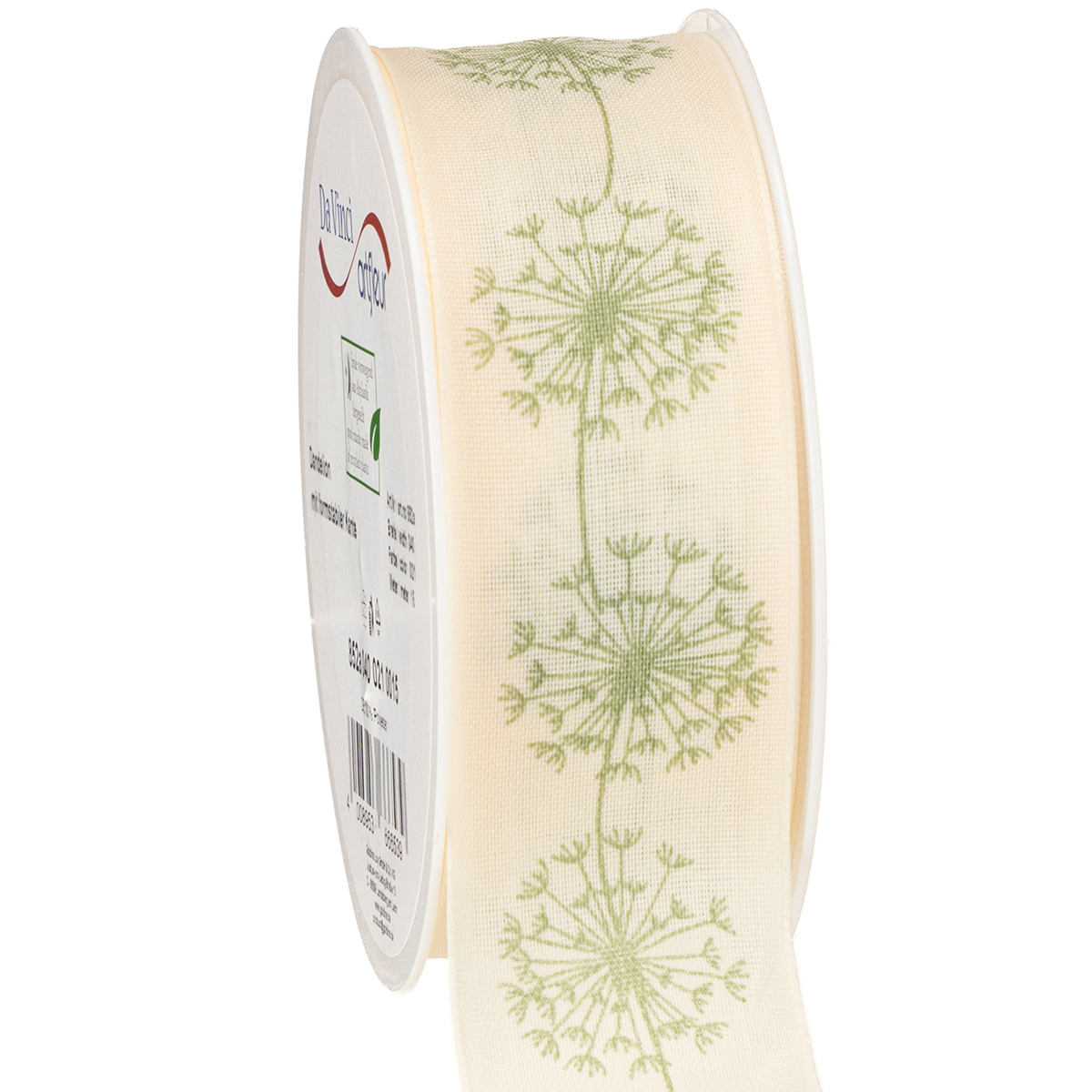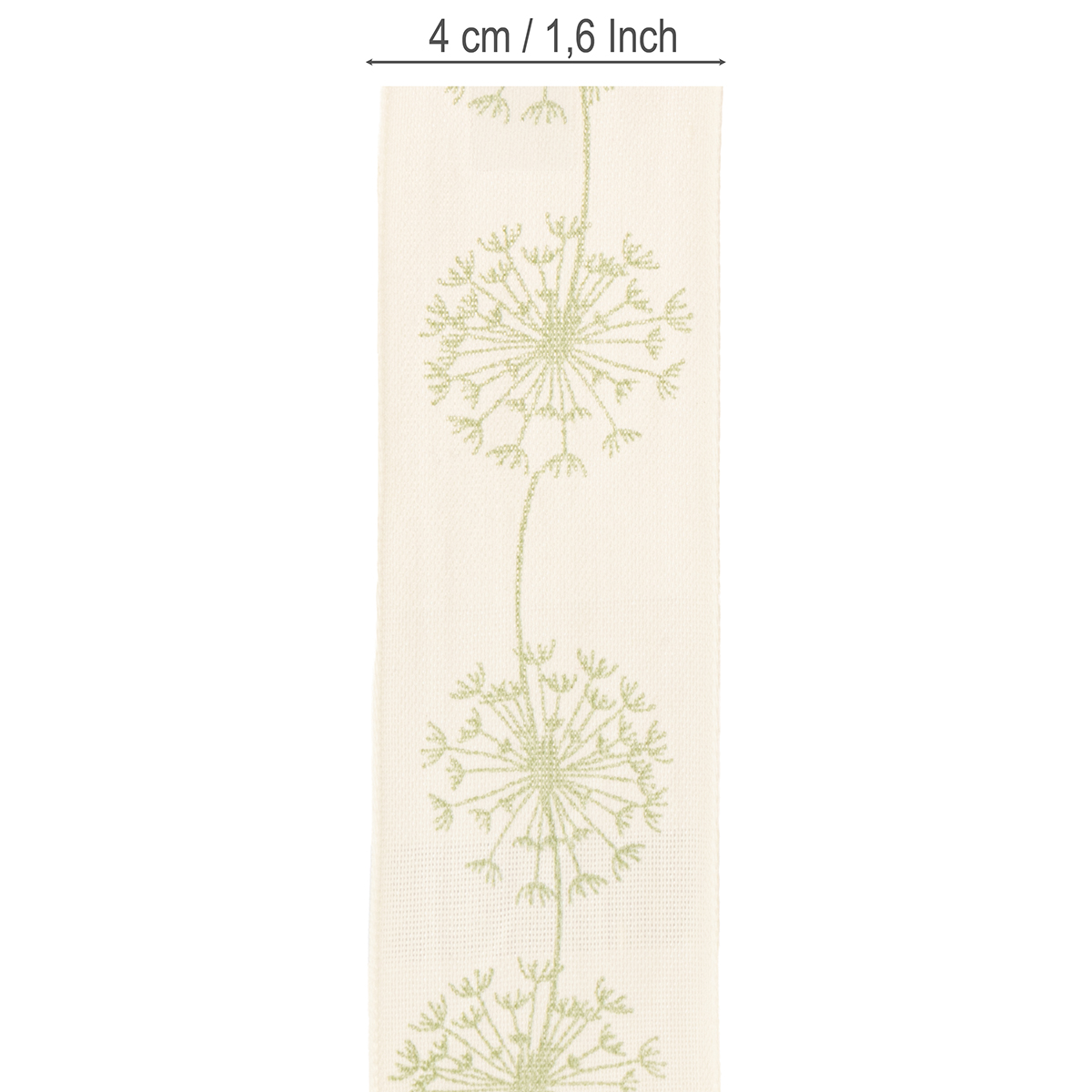 Koristeellinen nauha, lahjanauha, voikukkakuvio, kermanvärinen, 40 mm, 15 m