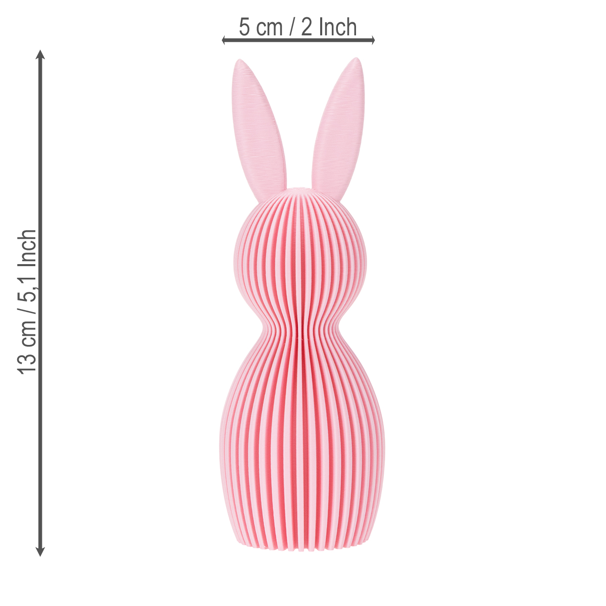 Pieni mutta täydellisesti muotoiltu – tämä koristeellinen pupu on todellinen kohokohta pääsiäiskoristeiden joukossa. 13 cm korkea ja harmonisen pinkin sävyinen pupu on mittasuhteiltaan täydellisesti muotoiltu herättämään huomiota olematta kuitenkaan häiritsevä. Yksityiskohtainen pintakuvio muistuttaa taiteellista hunajakennokuviota, joka muistuttaa käsin taiteltua paperia, mutta on itse asiassa valmistettu kestävästä muovista. Tämä tekee siitä sopivan paitsi sisäkäyttöön, myös kestävän esimerkiksi suojaisassa paikassa käytettäväksi.