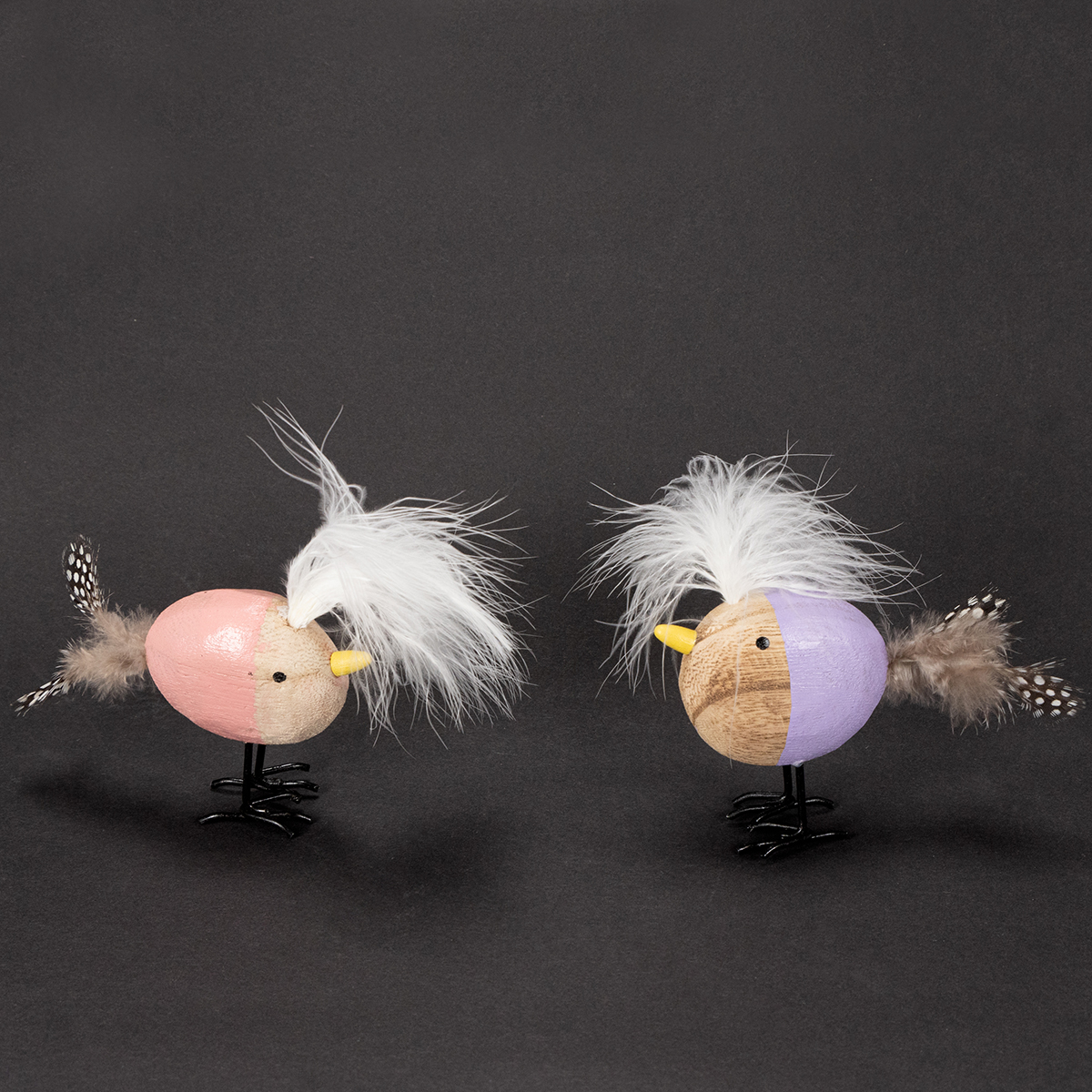Jokainen koristelintumme on valmistettu aidosta puusta erittäin huolellisesti yksityiskohtia myöten. Hienot, aidot linnun höyhenet tekevät jokaisesta kappaleesta ainutlaatuisen ja antavat sille luonnollisen viehätyksen. Nämä 10 cm pitkät, 3 cm leveät ja 9 cm korkeat koristeelliset puiset linnut sopivat täydellisesti kattaukseen tai keväällä ikkunalaudalle. Violetin ja vaaleanpunaisen yhdistelmä luo pehmeän ja iloisen tunnelman – ihanteellinen luomaan tervetulleen ja iloisen tunnelman.