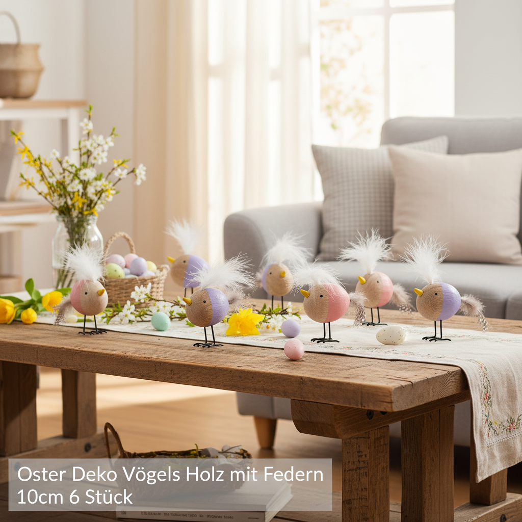 Luonnonpuun, hienon käsityötaidon ja eloisien värien yhdistelmä tekee tästä koriste-setistä todella erityisen. Nämä pienet linnut ovat paitsi helppoja sijoittaa, myös uskomattoman monipuolisia. Kuuden kappaleen settinä ne sopivat täydellisesti sisustusideoidesi toteuttamiseen. Tutustu moniin mahdollisuuksiin: värikäs korostus pääsiäispöytääsi, täydellinen täydennys kevätkoristeisiin tai huomaavainen lahja rakkaillesi.