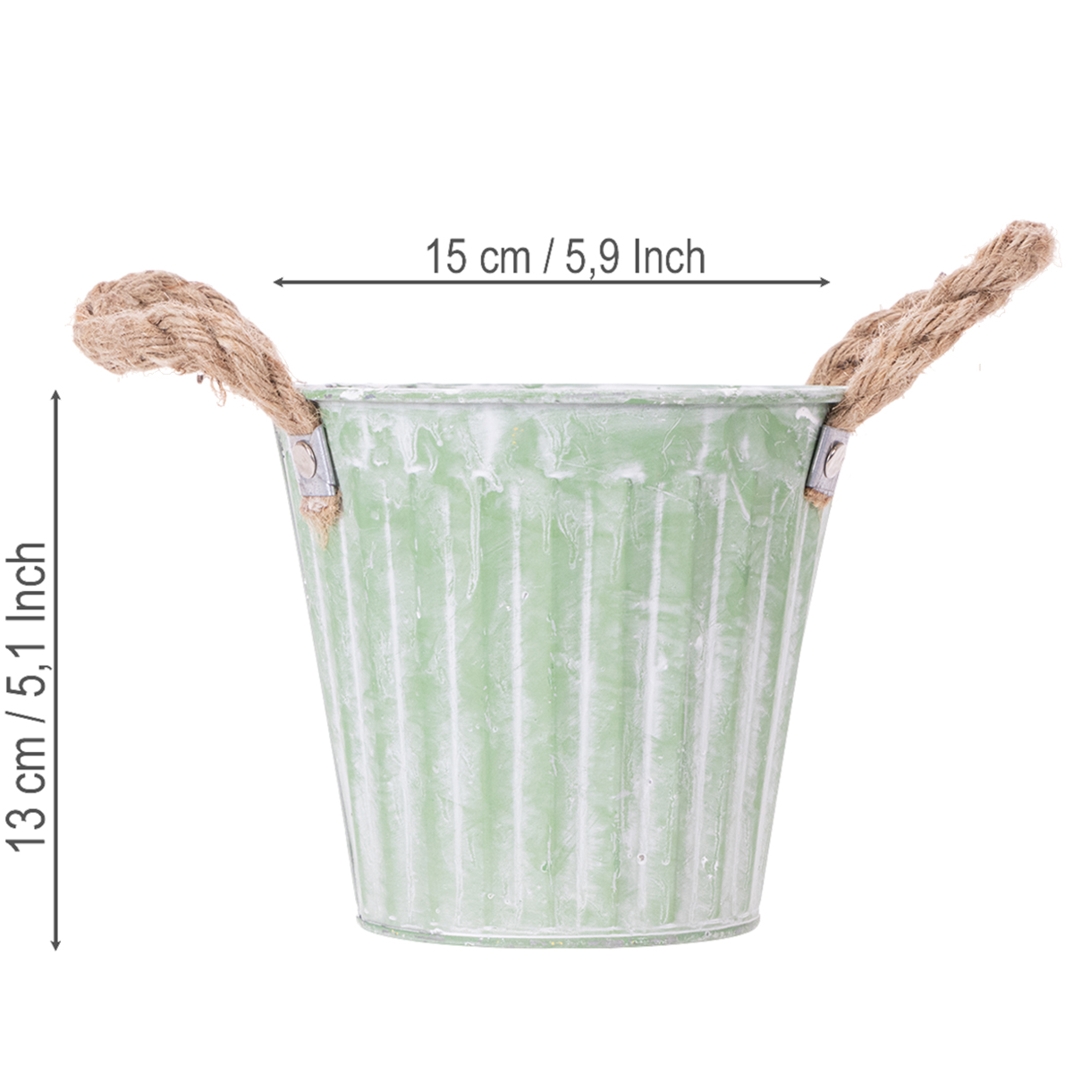 Koristeellinen ruukku, metallinen ämpäri istutusta varten, istutuslaatikko kahvoilla, pinkki/vihreä/keltainen shabby chic Ø15cm K13cm 3-osainen setti