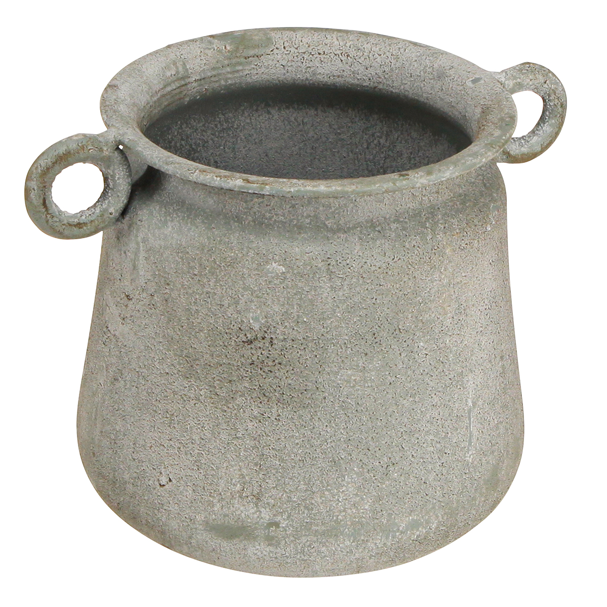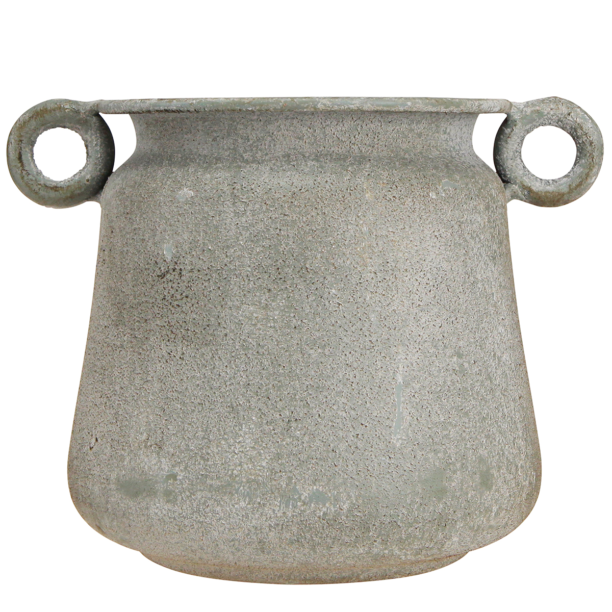 Koristeellinen ruukku vintage istutuskone metallia kahvoilla harmaa H13,5cm