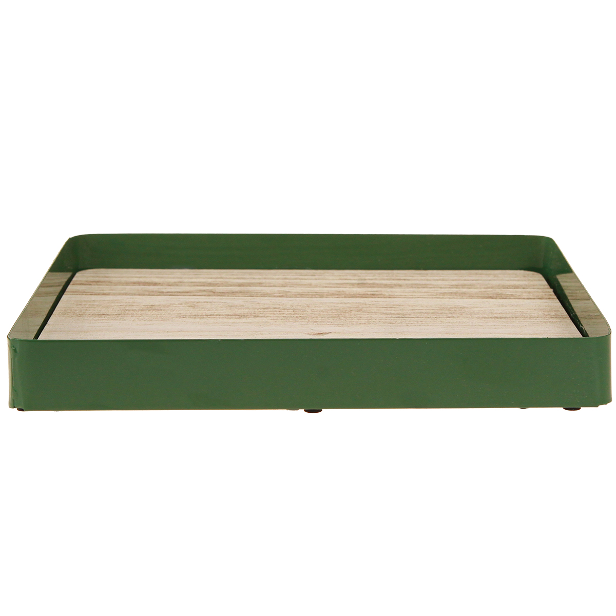 Tuotteen nimi: Koristeellinen tarjotin metallinen neliönmuotoinen vihreä puinen jalusta 25,5 × 25,5 cm