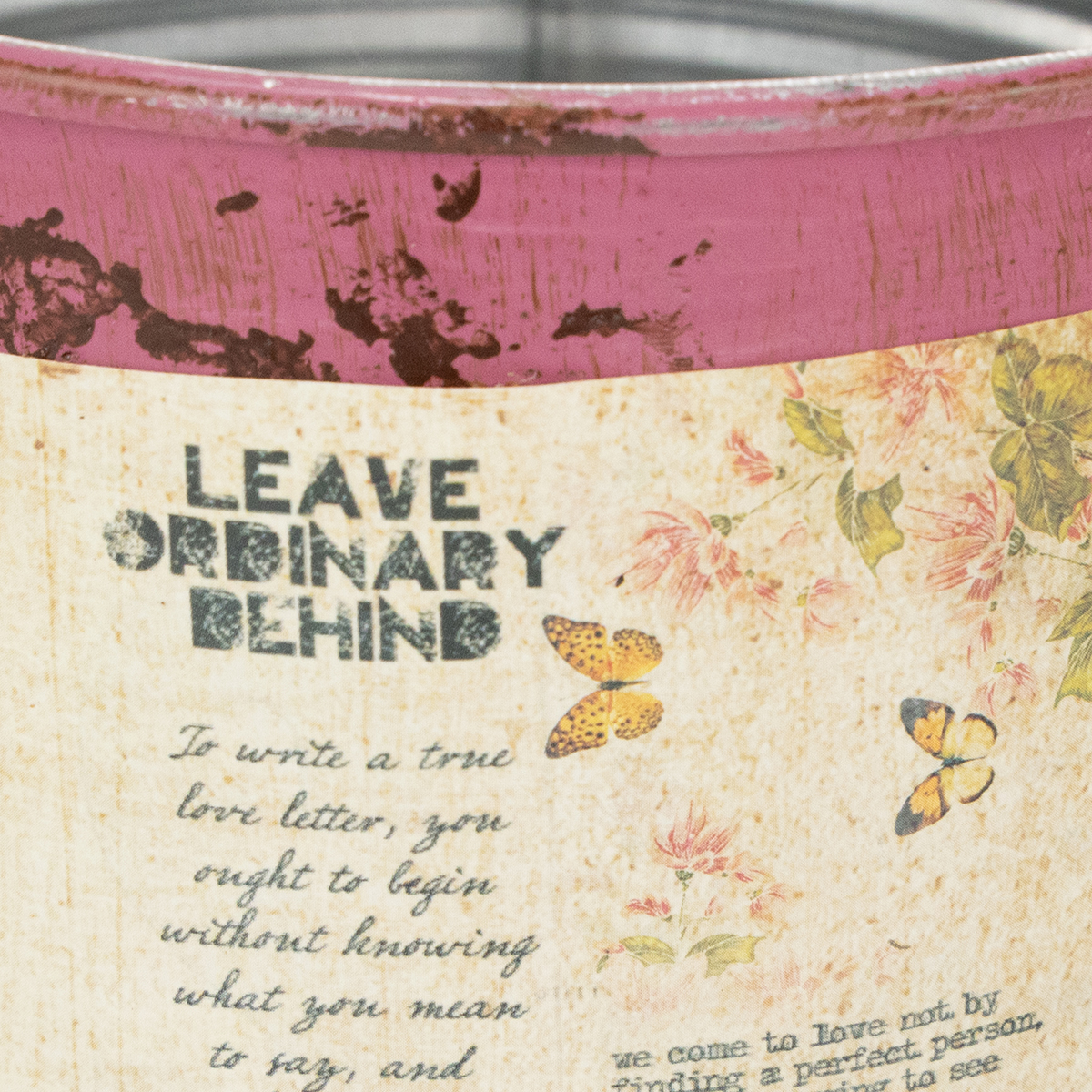 Metallista purppuranvärinen koristepelti on nostalginen asuste kesäkoristeeseesi! Istutukseen tarkoitettua peltipurkkia voidaan käyttää myös kätköpottina tai koristeena teollisessa suunnittelussa. Ulkopuolelta istutuskone näyttää kauniin ruosteiselta useiden maalikerrosten taitavasti levittämisen ansiosta - loistava kontrasti vahvalle, vaalean violetille! Itse asiassa metallikoristelu on aivan uusi: sisäpuoli kiiltää hopeanvärisesti eikä siinä ole reunoja. Lopuksi koristeellisessa pelissä oleva retrotarra kuljettaa sinut kokonaan vintage-puutarhaan.