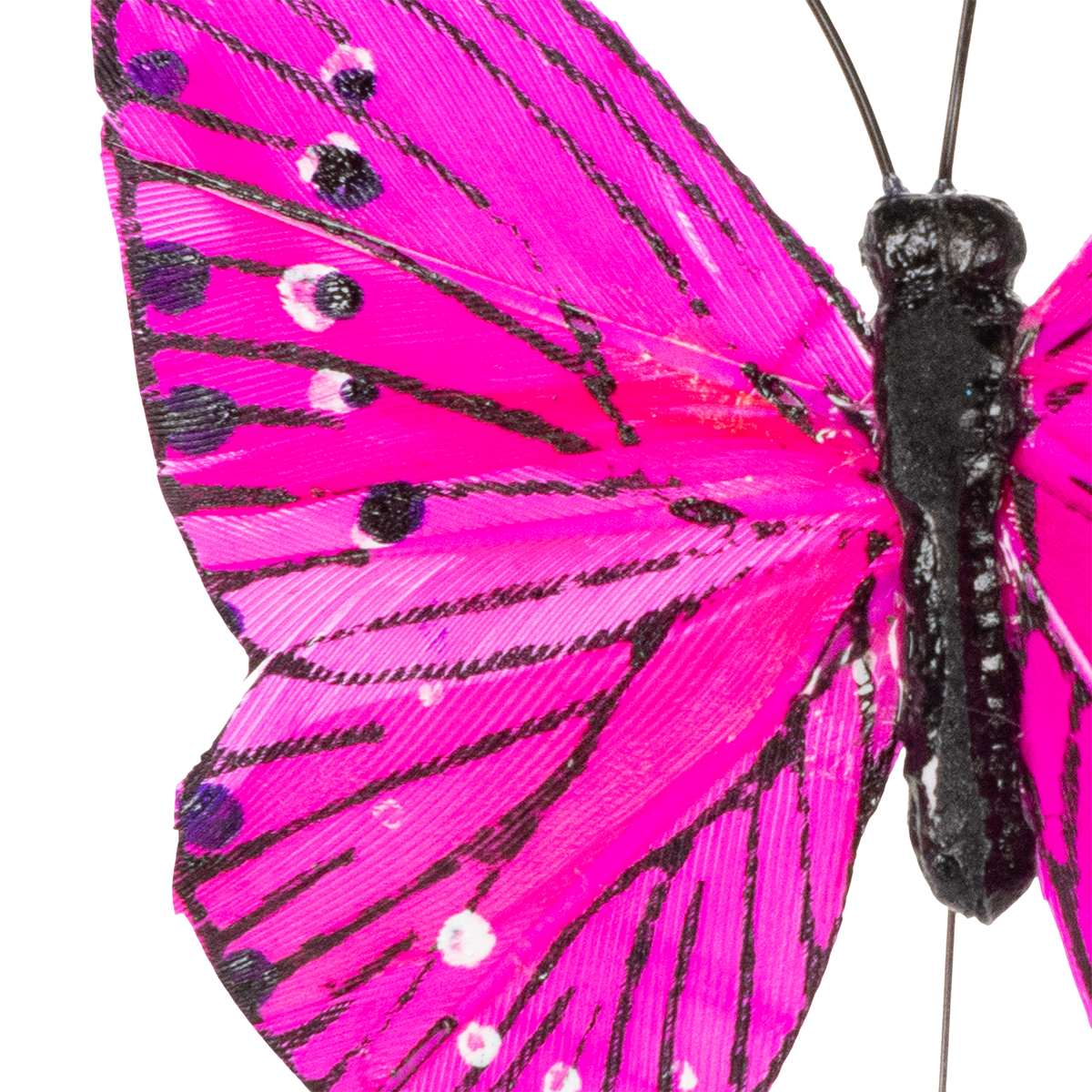 Setti tarjoaa erityisen monipuolisen värivalikoiman. Hienosta kermanvärisestä iloisen oranssiin ja silmiinpistävään pinkkiin, jokainen väri on pieni kohokohta. Aito höyhenmateriaali antaa perhosille erityisen luonnollisen ilmeen. Jokaiseen perhoseen kiinnitetty lanka on kokonaiskorkeudeltaan 24 cm – täydellinen perhosten sisällyttämiseen kukka-asetelmiin tai niiden asettamiseen kelluviksi koristeiksi pöydälle.