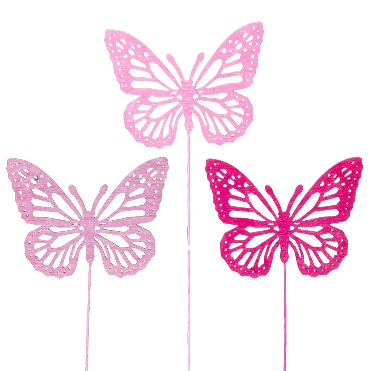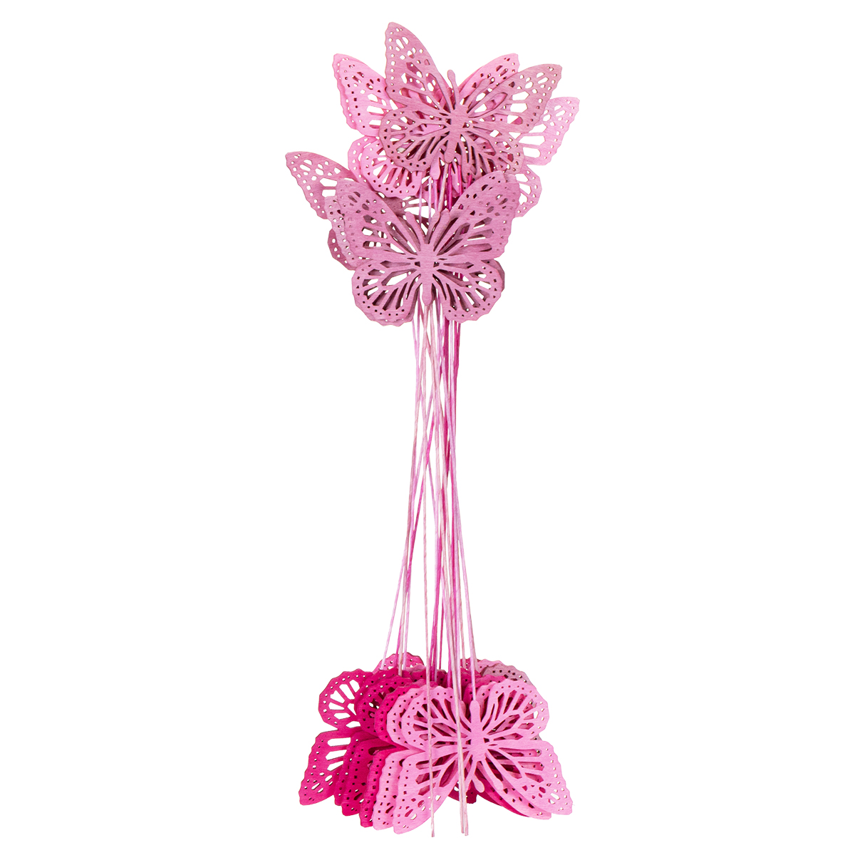 Olipa kyseessä sitten puutarhajuhlat tai vain ikkunalaudan piristys, nämä varrelliset metalliperhoset ovat todellinen katseenvangitsija. Värit vaihtelevat pehmeästä vaaleanpunaisesta eloisaan fuksianpunaiseen, täydellisiä väripilkkujen lisäämiseen. Ne sopivat myös erinomaisesti askarteluprojekteihin, lahjapakkauksiin tai ihastuttavaksi pieneksi koristeelliseksi yllätykseksi kimpuissa.