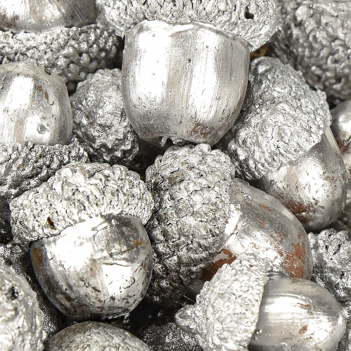 Tuotteen nimi: Koristeelliset tammenterhot, hopea, adventtikoristeet, luonnon syksyn hedelmät, maalaistyylinen talo Ø1,5 – 2,5 cm P1,5 – 3 cm 300 g