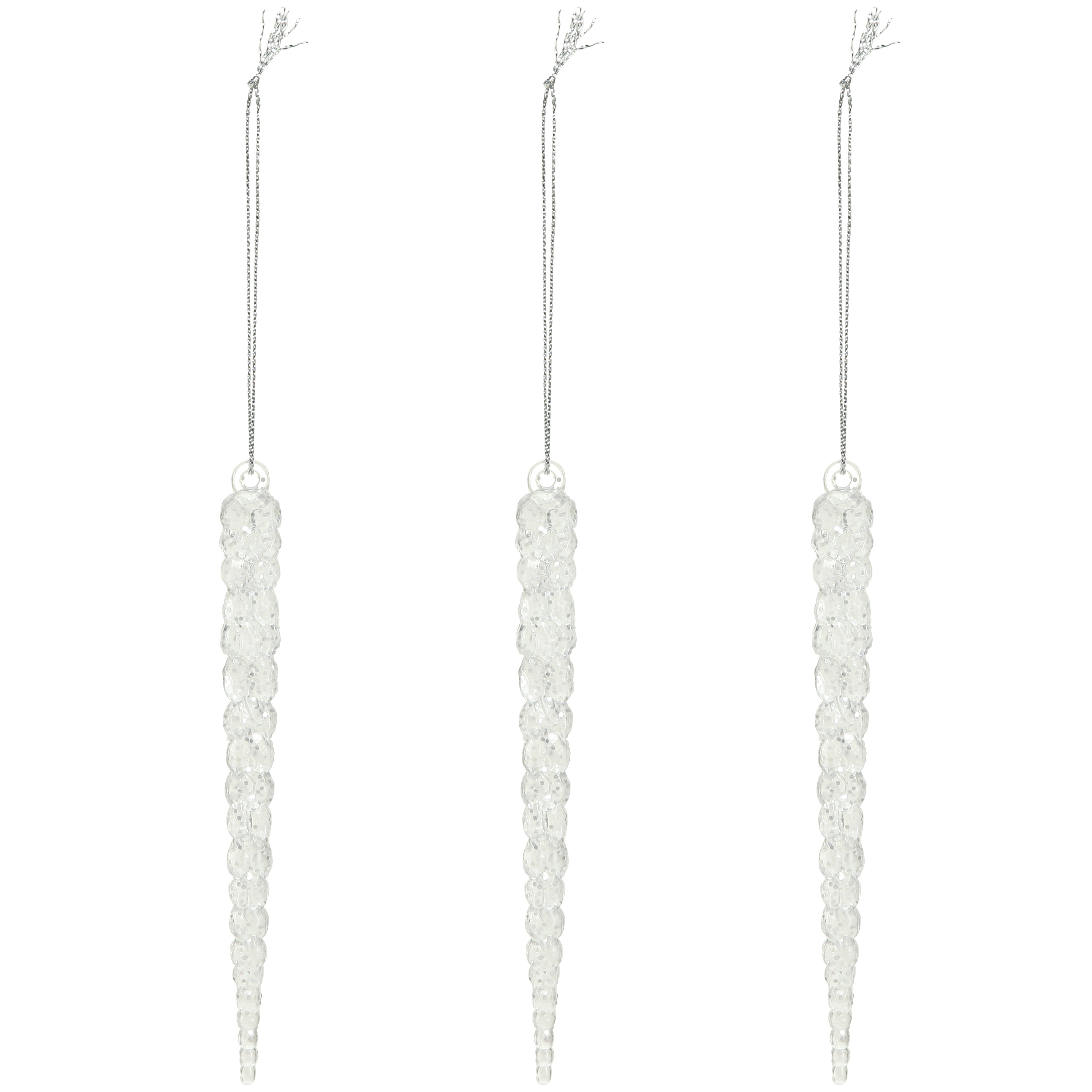 Kimalteleva jääpuikkomme on suunniteltu mestarillisesti vangitsemaan talven jäinen kimallus. Läpinäkyvä muotoilu ja hieno kiilleverhoilu takaavat säteilevät efektit joulukuuseesi tai ikkunakoristeena. Sirpaloitunut pinta taittaa valon kiehtovalla tavalla ja saa jääpuikot loistamaan - vastustamaton kohokohta mihin tahansa tyylikkääseen talvikoristeeseen ripustettavaksi.