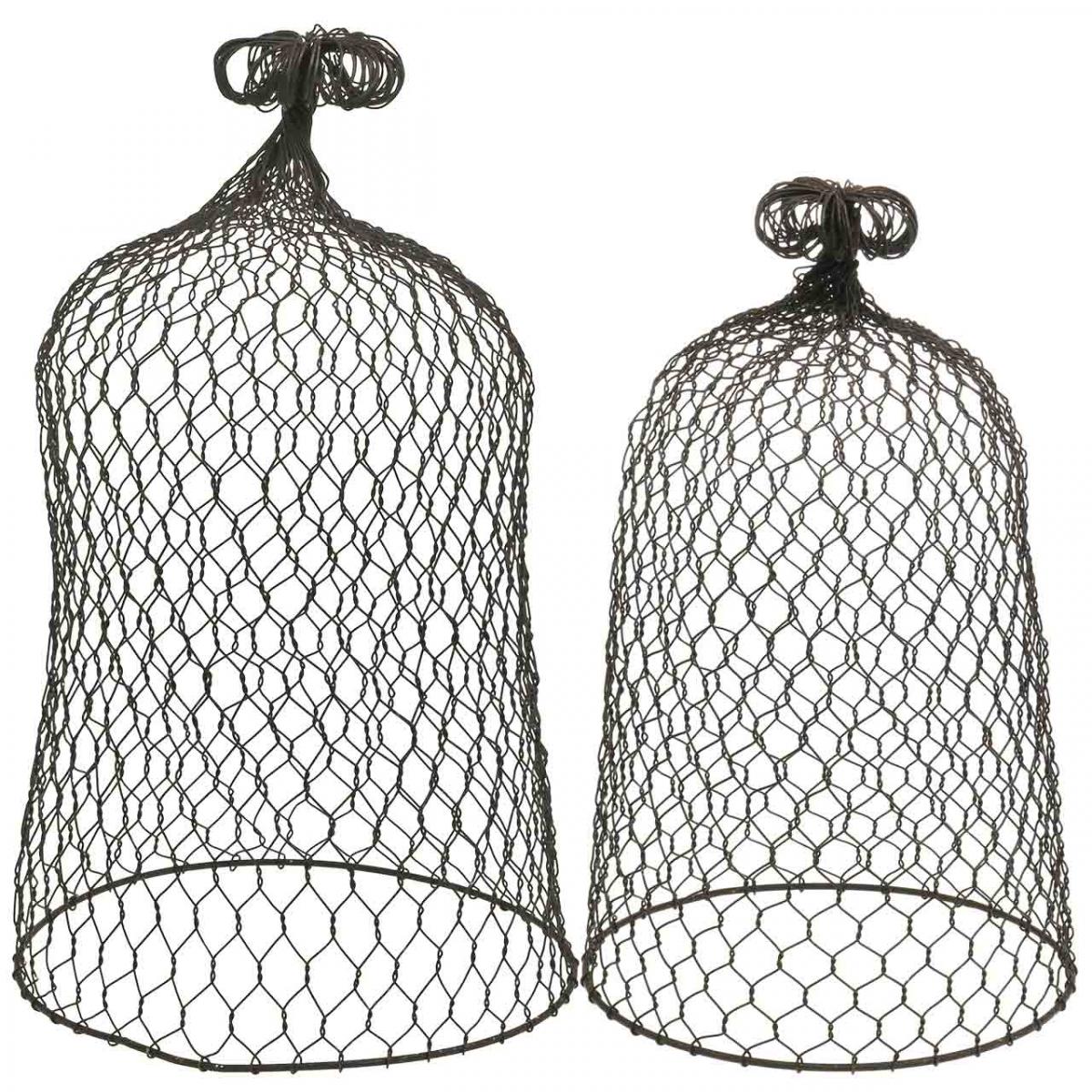 Tummanruskeasta metallilangasta valmistettu ja paikoin hieman patinakoristeinen kahden metallikellon setti on kahta kokoa ja siinä on myös nostokahva.