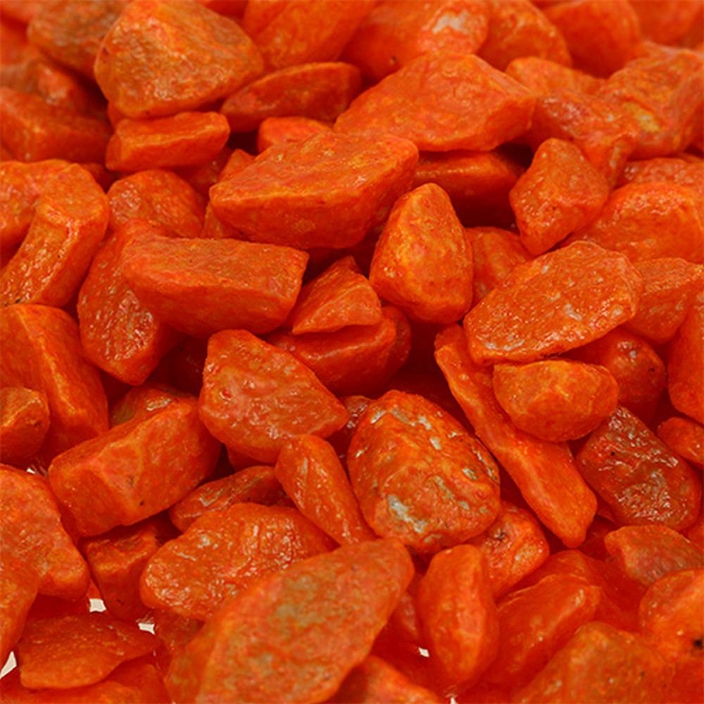 Oranssinväriset koristekivet ovat saatavilla yhteensä 2 kilon pusseissa ja jokainen kivi on 9-13 millimetriä pitkä.