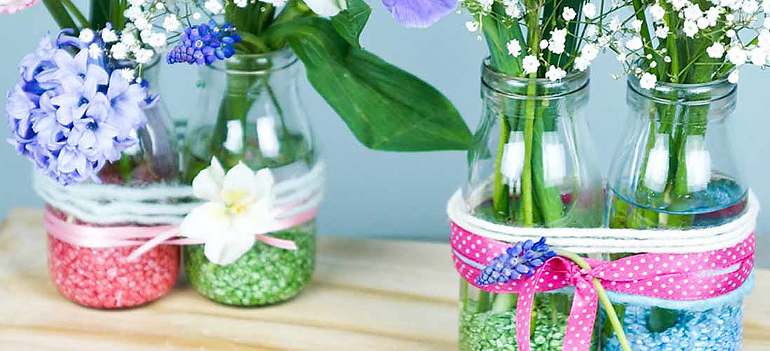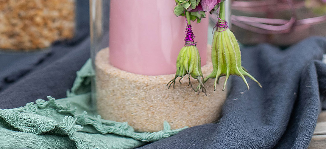 Lasi-astioihin täytettynä värillistä hiekkaa voidaan käyttää hyvien vaikutusten saavuttamiseksi. Pienellä taidolla voidaan luoda epätavallisia kuvioita eri värikerroksista.