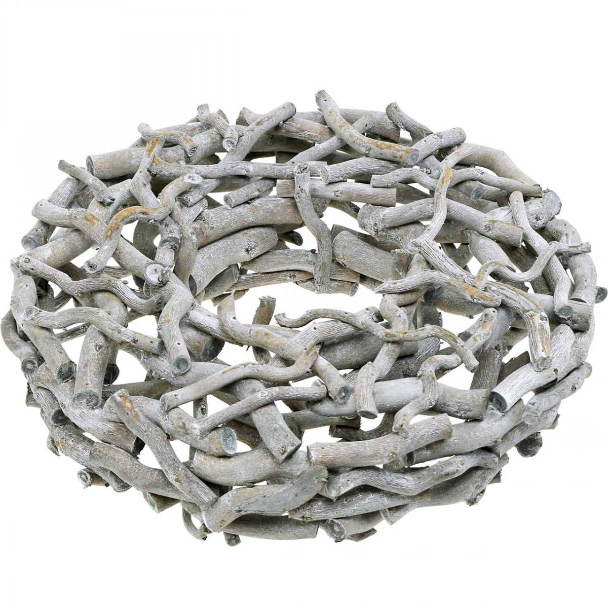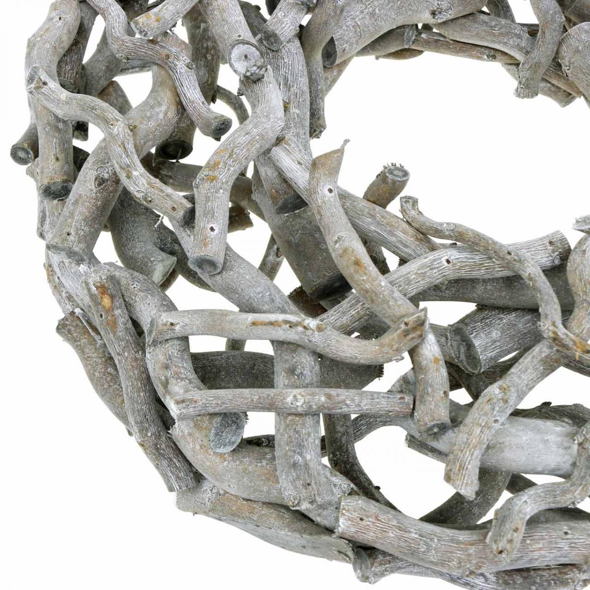 Tuotteen nimi: Koristekranssi, korkkiruuvikuvioinen paju, harmaa kalkki, Ø40cm - Luonnonpuukoriste, seinäkranssi, pöytäkoriste