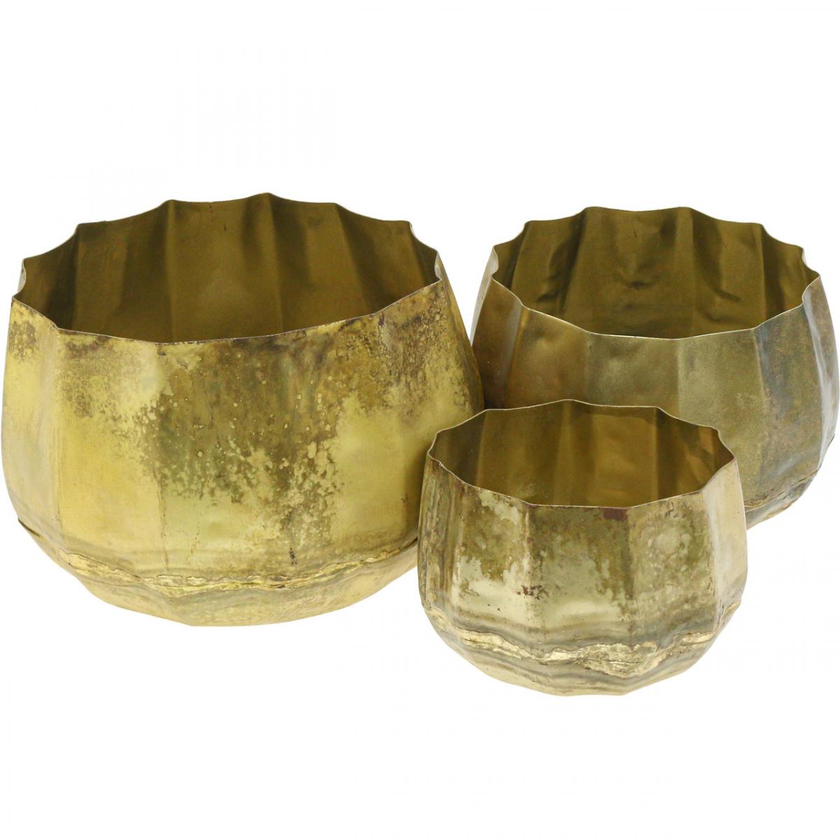 Tämä messingin näköinen muodokas koristekulho ei jätä mitään toivomisen varaa koristeluvaihtoehdoille. Tämä setti sisältää kolme metallikulhoa suositussa vintage-tyylissä.