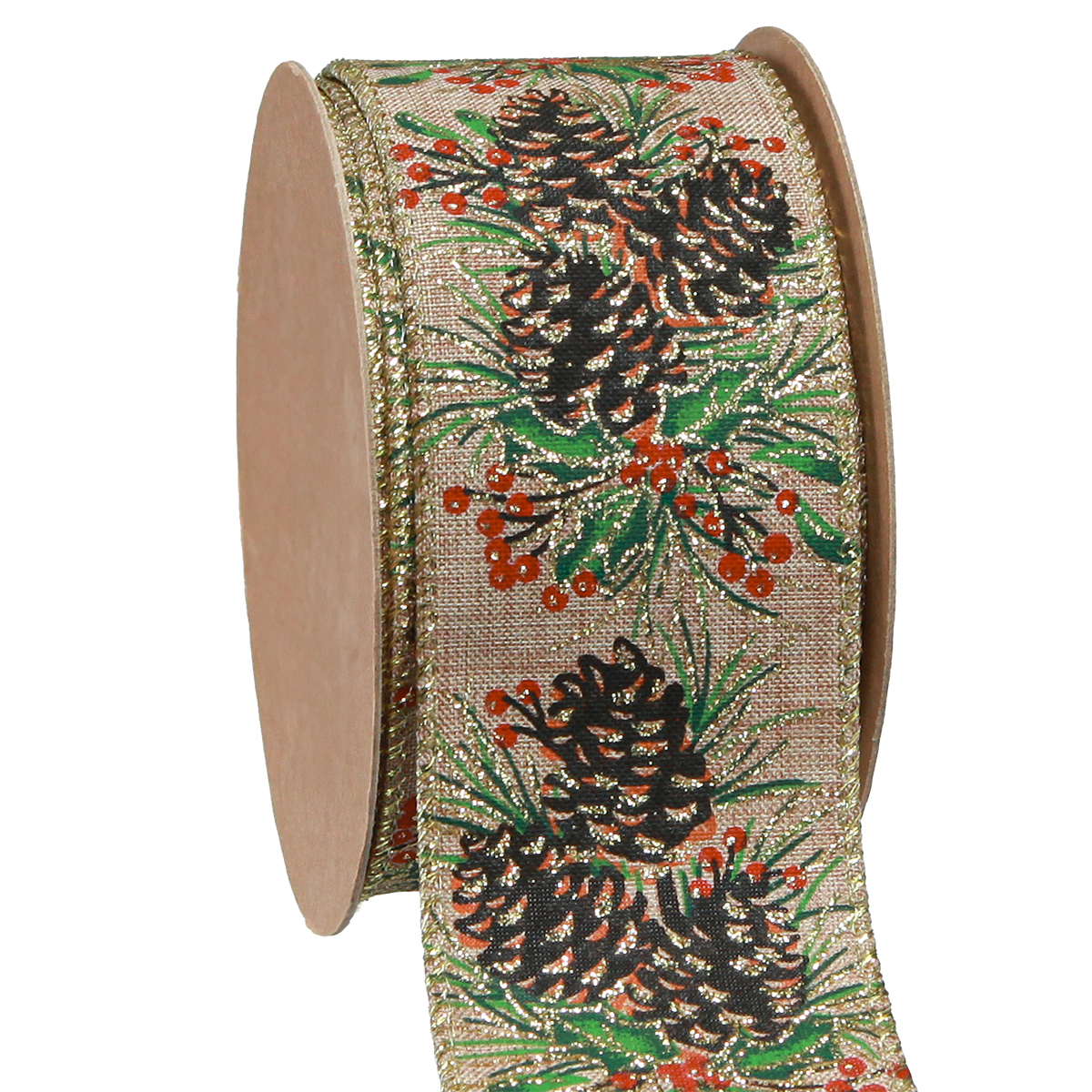 Tuotteen nimi: Koristenauha Joulukäpyjä leveä lahjanauha luonnollinen 60mm 10m