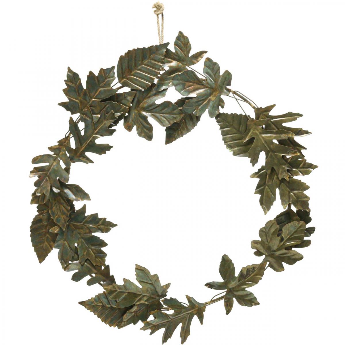 Tuotteen nimi: Koristerengas metalliseppele seinäkoriste lehdet messinkiä Ø52cm