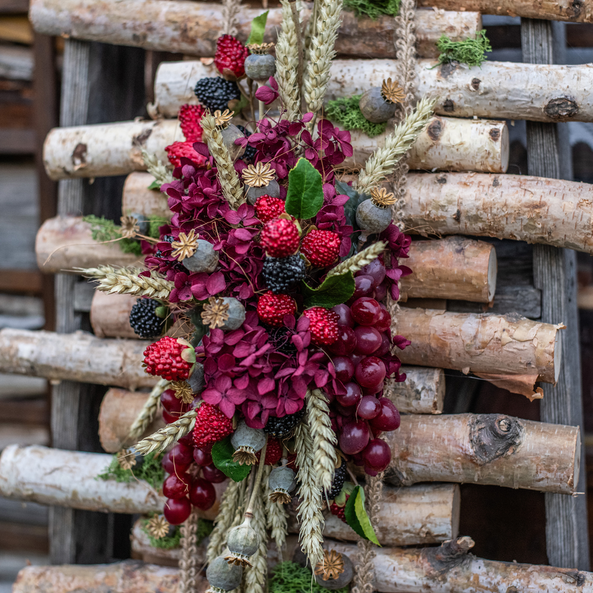 Mutta koristeelliset viinirypäleet näyttävät ihastuttavalta myös lautasella. Erityisen kaunis se on tekohedelmäkulhona, joka on järjestetty kolmikoksi pienten punaisen ja sinisen väristen tekoviinirypäleiden kanssa!