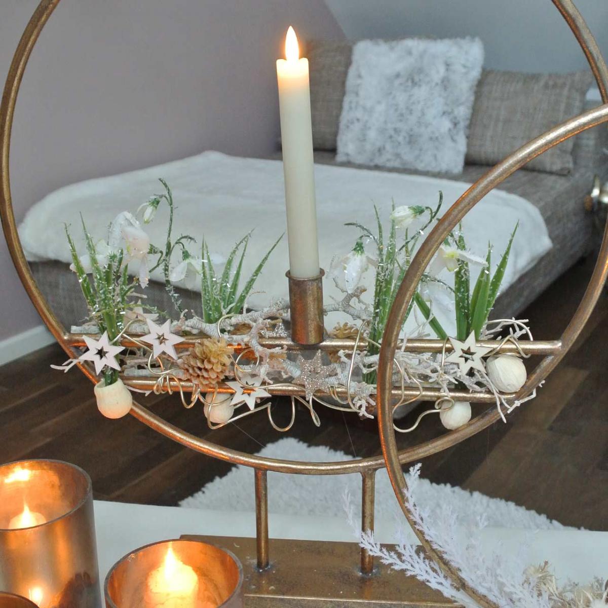 Vinkki: Voit myös yhdistää kynttilänjalan trendikkääseen antiikkityyliin pienemmän metallirenkaan tai koristerenkaan muunnelman kanssa ripustettavaksi myymälästämme.