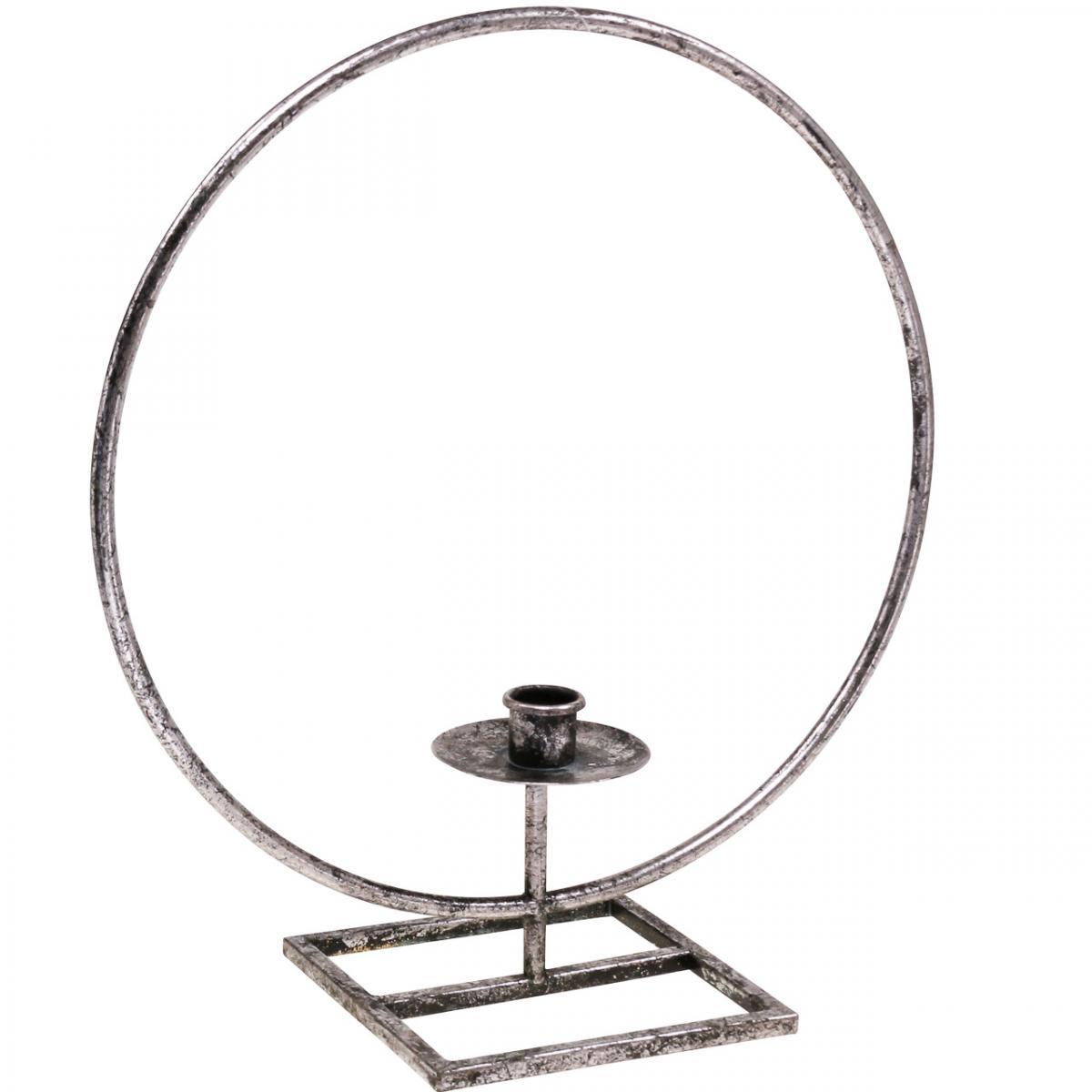Koristesormus metallinen kynttilänjalka hopea shabby chic Ø32cm