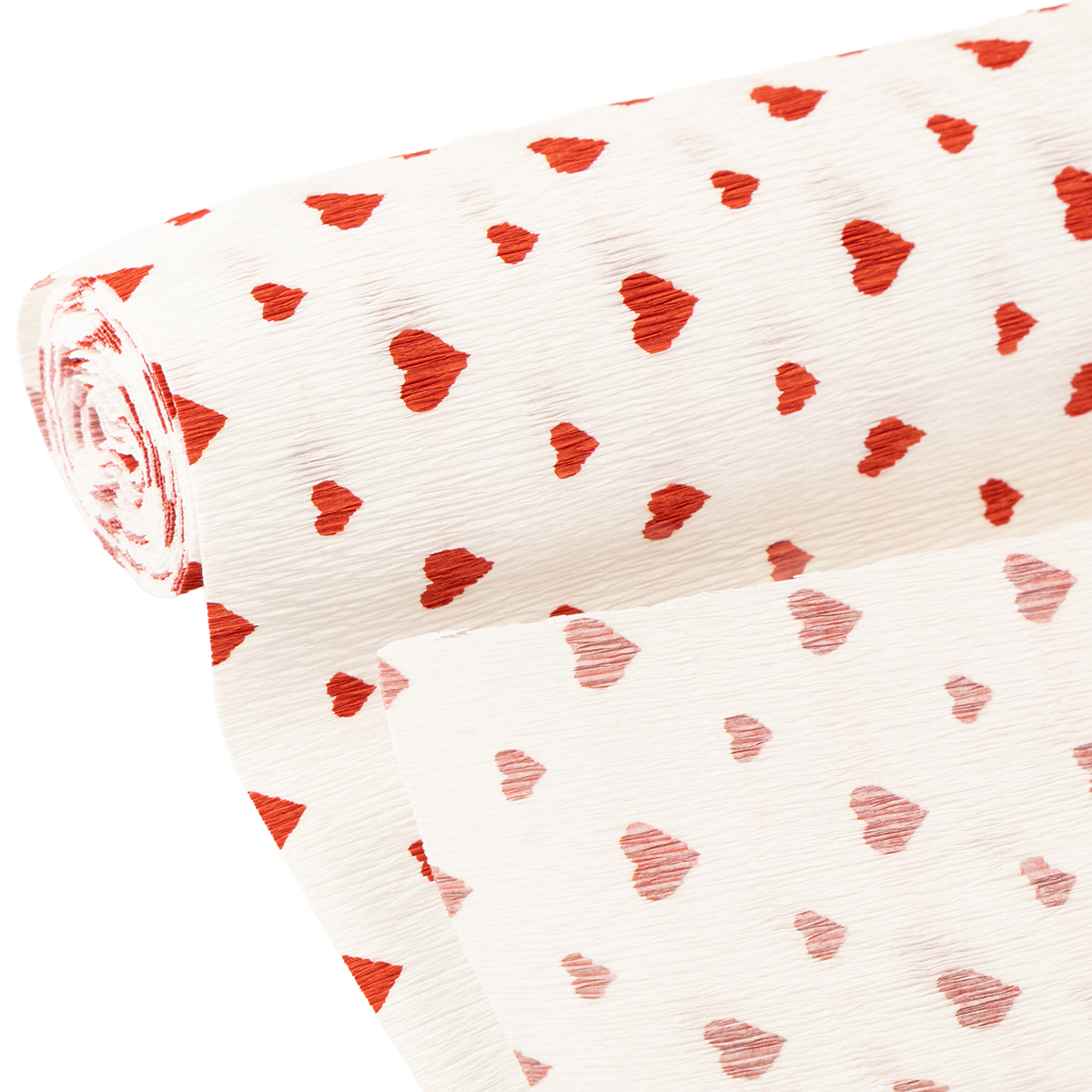 Kreppipaperia sydämillä saat kätevästi rullalla.