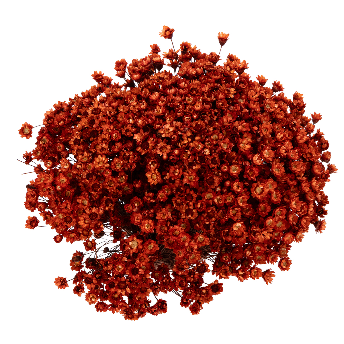 Tämä kuivakukkakimppu on harmoninen yhdistelmä glixia-kukkia ja pehmeästi kimaltelevia heiniä. Miellyttävän punaisen ja luonnollisen väripalettinsa ansiosta se tuo lämpöä ja tekstuuria mihin tahansa huoneeseen. Olipa se sitten eteisen lipastolla, olohuoneen hyllyllä tai ruokapöydän keskipisteenä, tämä asetelma tekee hienovaraisesti vaikutuksen. Sen pitkäikäisyys on erityisen huomionarvoista: asettamisen jälkeen tämä kimppu pysyy upeana ja raikkaana useita kuukausia. Luovista harrastuksista nauttivat voivat käyttää sitä myös hienostuneissa tee-se-itse-projekteissa, kuten taiteellisissa kuivakukka-asetelmissa. Yhdistä se muihin luonnonmukaisiin koriste-elementteihin, kuten puisiin tai keraamisiin maljakoihin, saadaksesi harmonisen estetiikan. Tämä kimppu tuo myös erityisen silauksen juhlallisiin tilaisuuksiin, kuten häihin tai syntymäpäiväjuhliin. Yksinkertaisesti upea – täydellinen niille, jotka arvostavat luonnollista eleganssia.