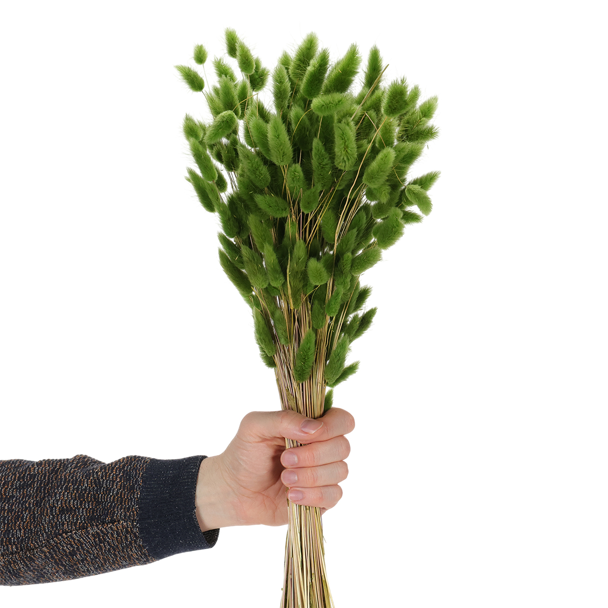 Tämä kuivattu oliivinvihreä Lagurus-heinä tuo ripauksen eloisuutta mihin tahansa boheemiin kuivakukka-asetelmiin. Tämän kuivatun heinän kirkkaanvihreä on yksi trendikkäimmistä väreistä, joita näet monenlaisissa kuivakukka-asetelmissa.
