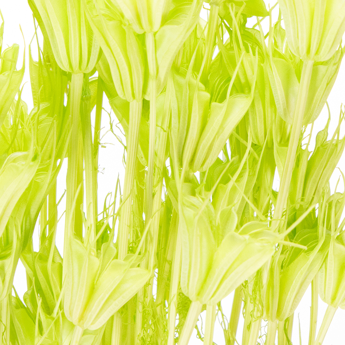 Nigellan kuivakukat tekevät vaikutuksen viehättävällä muotoilullaan ja eloisalla vihreällä värillään, jotka kaunistavat mitä tahansa huonetta. Niiden herkät tekstuurit kutsuvat tutkimaan uusia sisustusideoita. Asettele kuivakukat esimerkiksi yksinkertaiseen lasimaljakkoon tai yhdistä ne muihin luonnonmateriaaleihin, kuten puuhun tai kuivattuun eukalyptukseen. Kestävän luonteensa ansiosta ne ovat pitkäikäisiä eivätkä vaadi monimutkaista hoitoa. Mahdollisesti kertynyt pöly on helppo poistaa pölyhuiskalla. Nämä kuivakukat sopivat erityisen hyvin sisäkäyttöön, mutta niillä voi luoda kauniin vaikutelman myös suojaisissa ulkotiloissa.