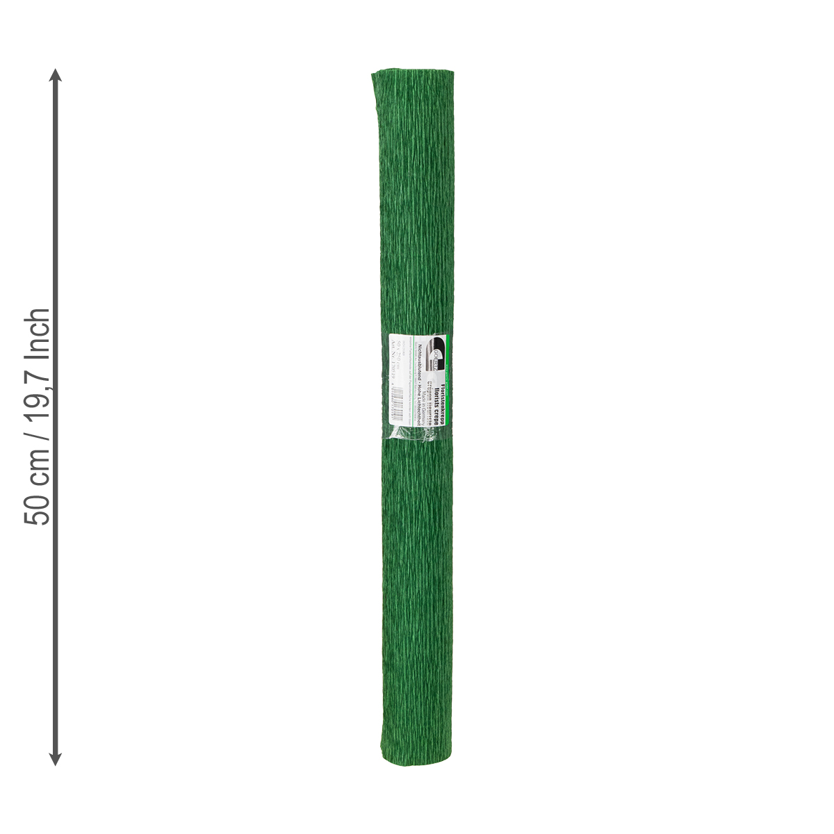 Tummanvihreän värisen floristikreppipaperin mitat ovat noin 50 x 250 senttimetriä, ja se toimitetaan rullana. Paino on noin 128 grammaa neliömetriä kohti ja paino noin 160 grammaa.
